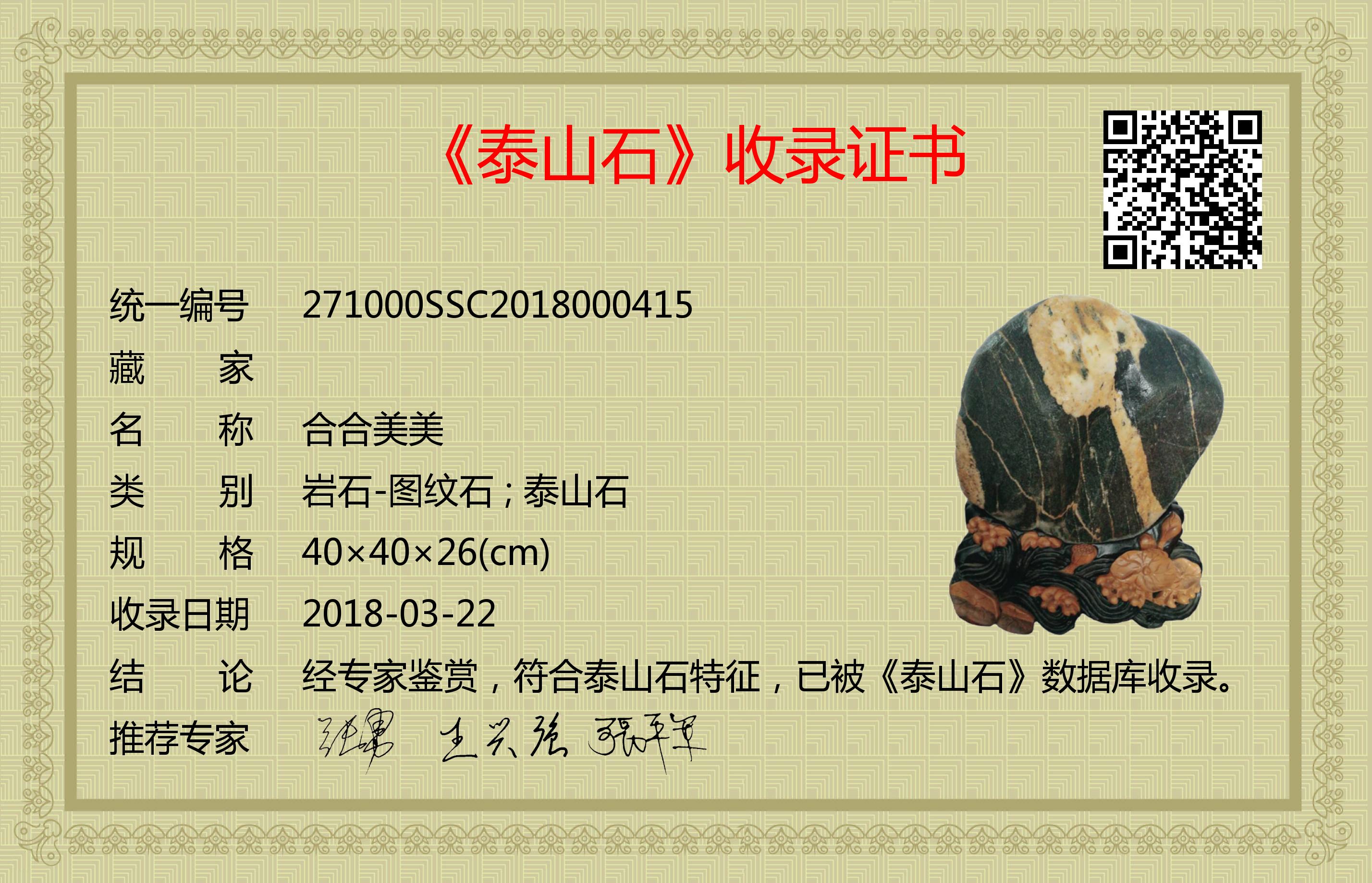 经专家鉴赏,符合泰山石特征,已被《泰山石》数据库收录。