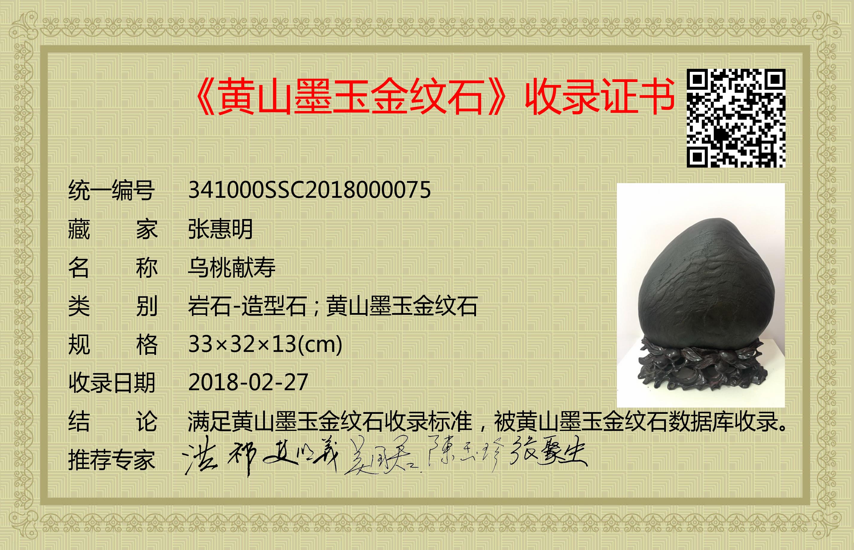 满足黄山墨玉金纹石收录标准,被黄山墨玉金纹石数据库收录。