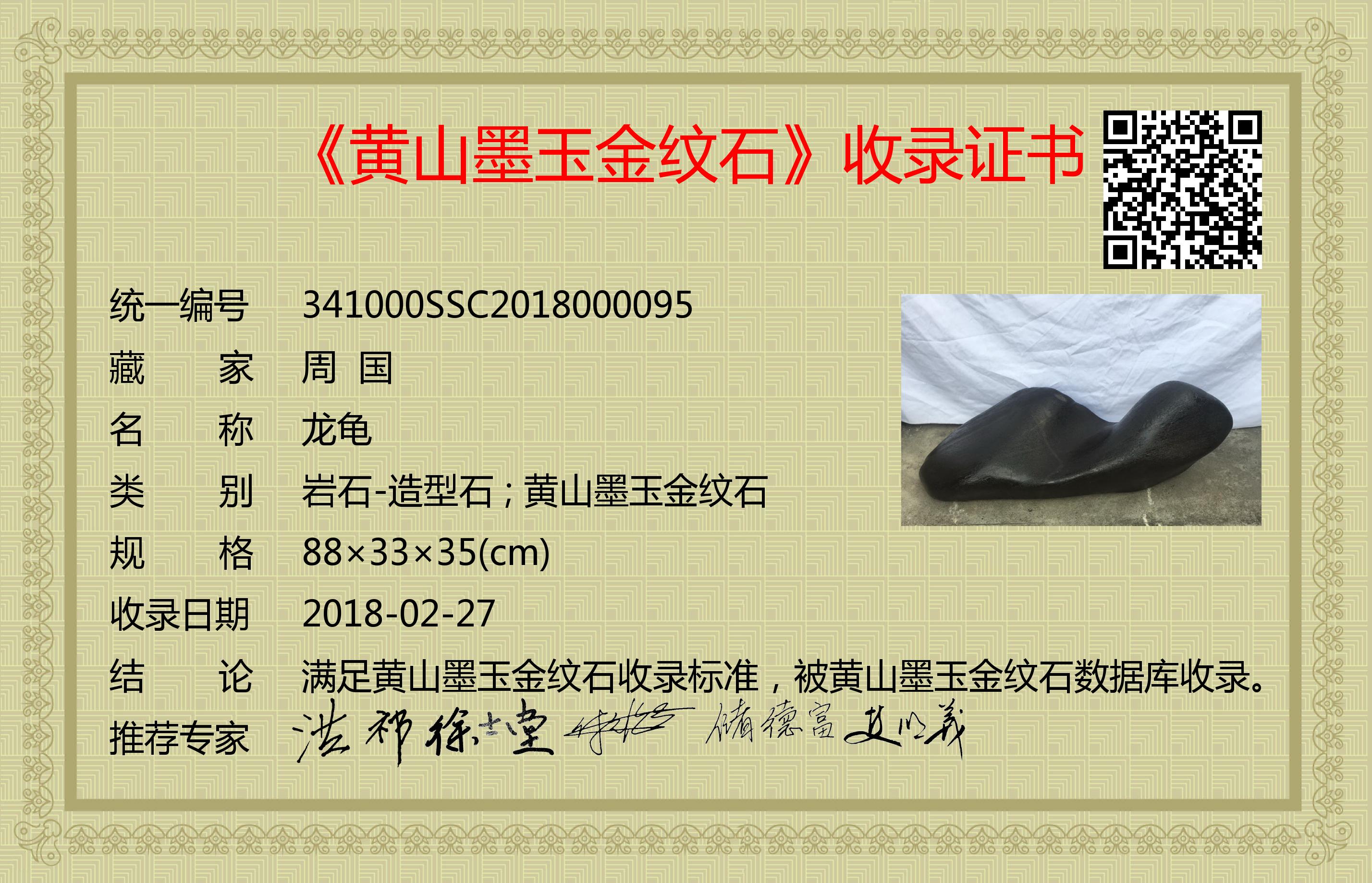 满足黄山墨玉金纹石收录标准,被黄山墨玉金纹石数据库收录。