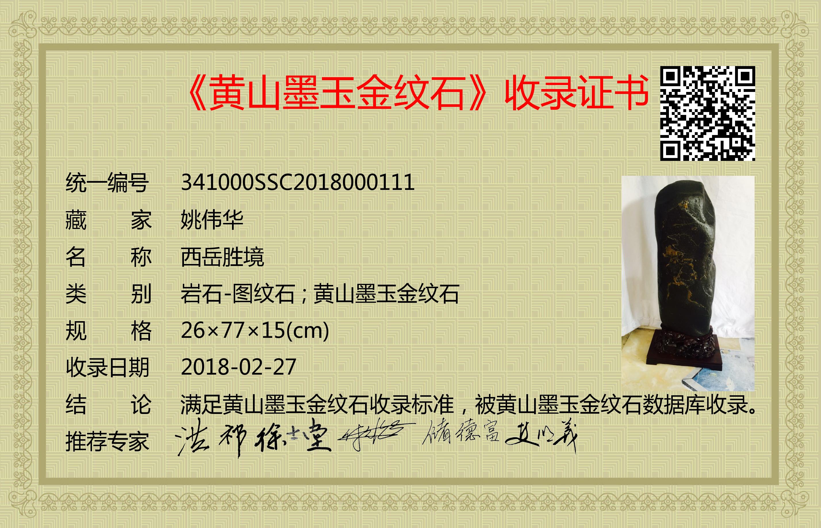 满足黄山墨玉金纹石收录标准,被黄山墨玉金纹石数据库收录。