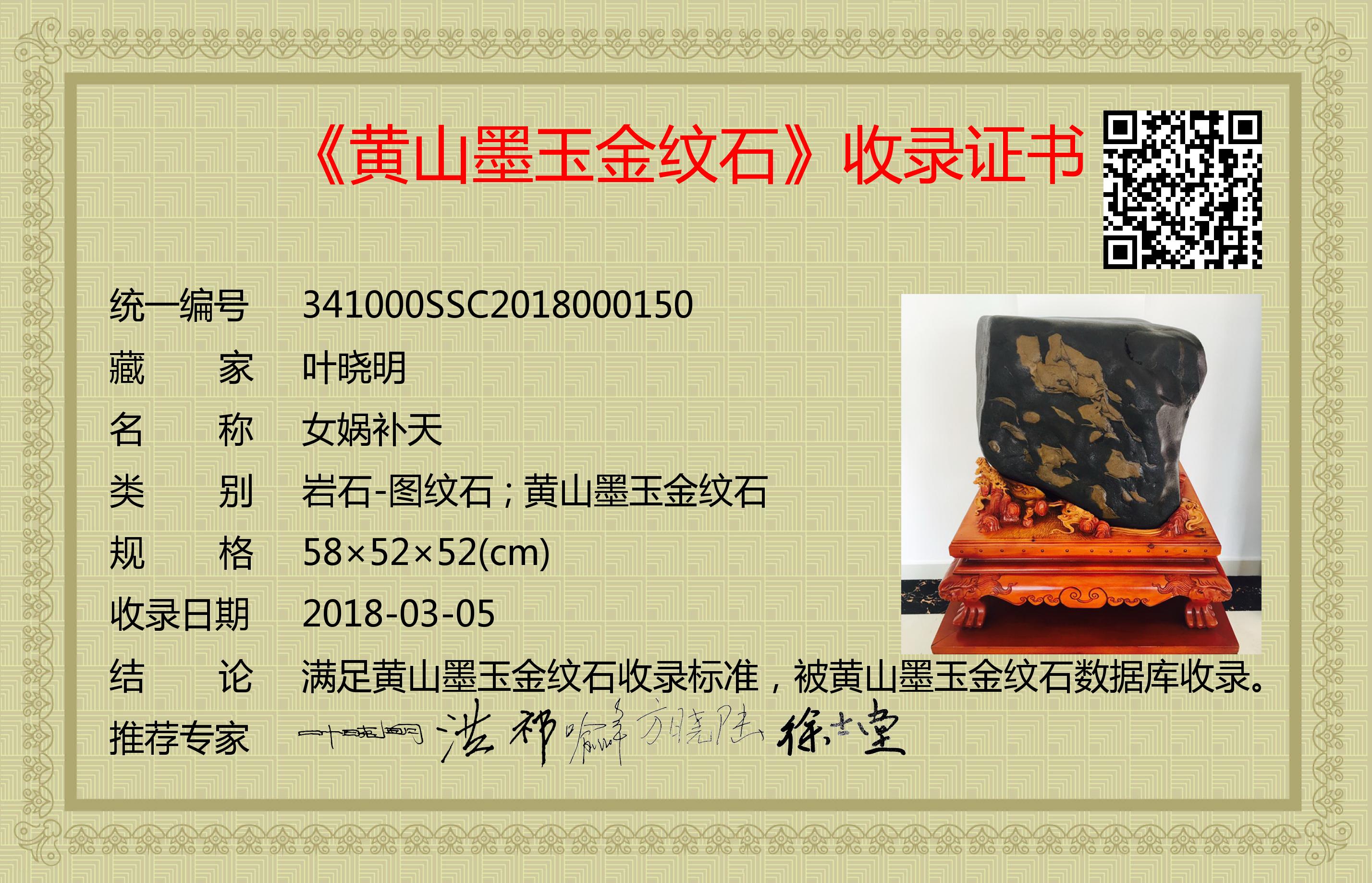 满足黄山墨玉金纹石收录标准,被黄山墨玉金纹石数据库收录。
