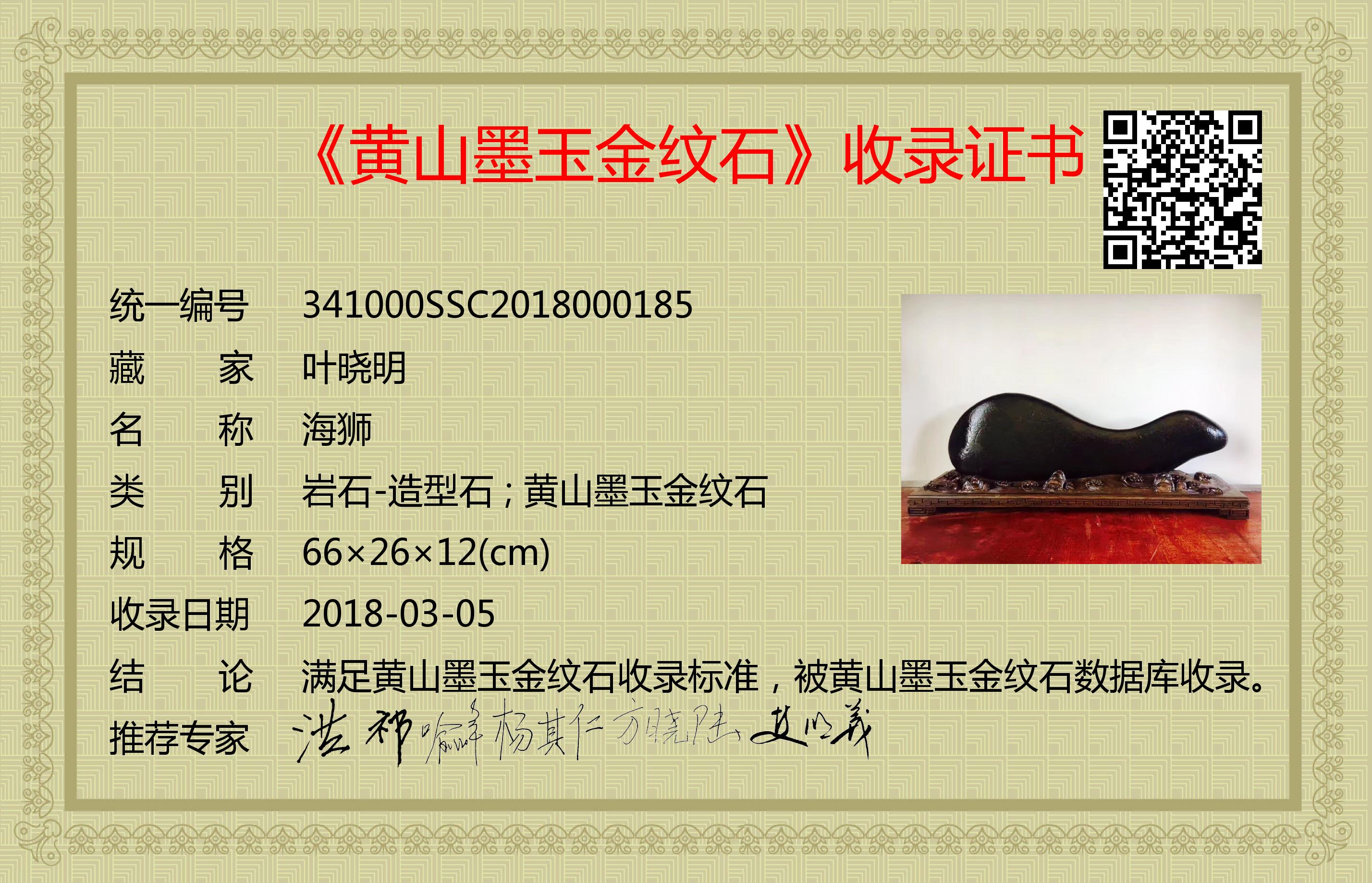 满足黄山墨玉金纹石收录标准,被黄山墨玉金纹石数据库收录。