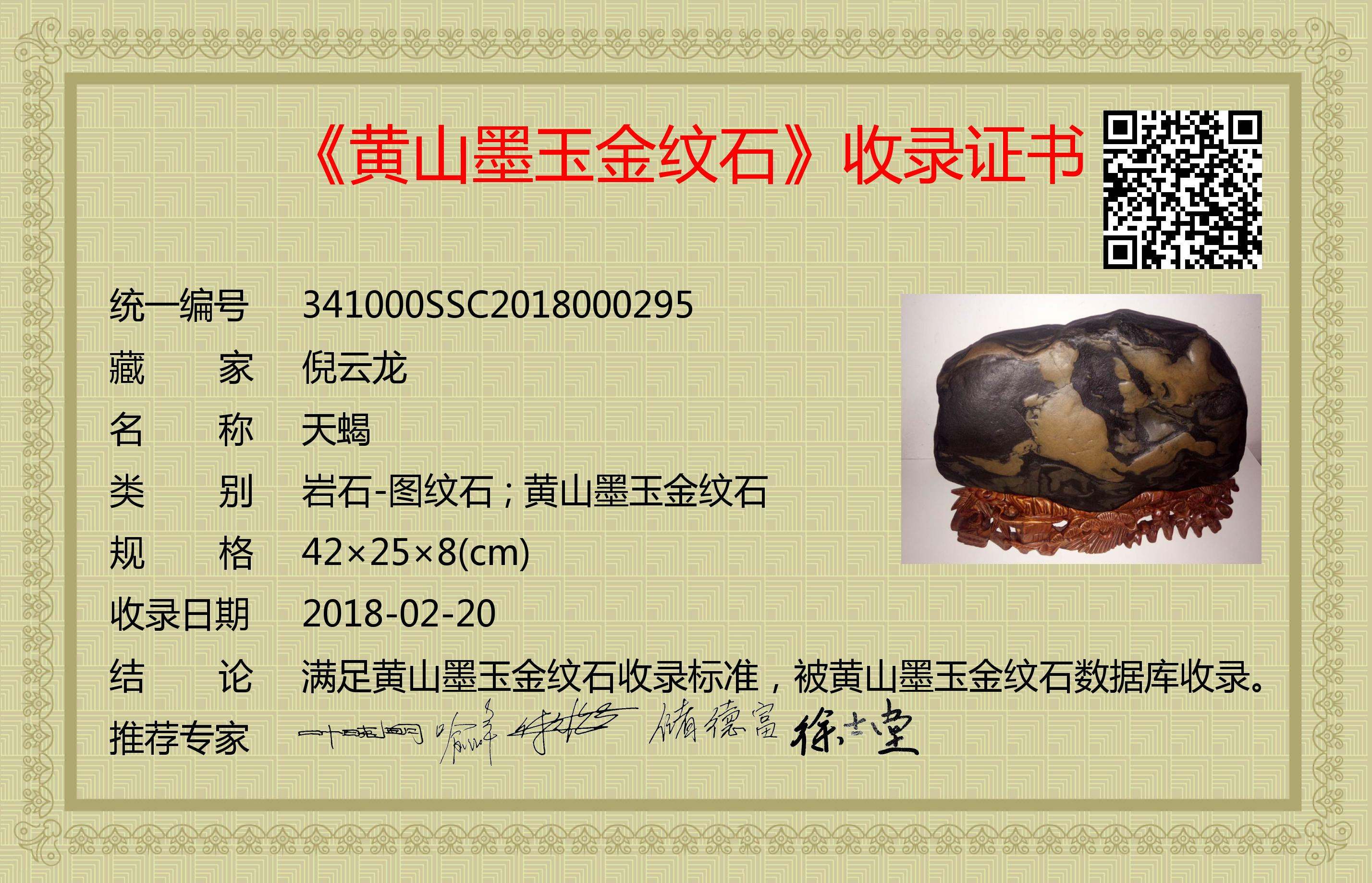 满足黄山墨玉金纹石收录标准,被黄山墨玉金纹石数据库收录。