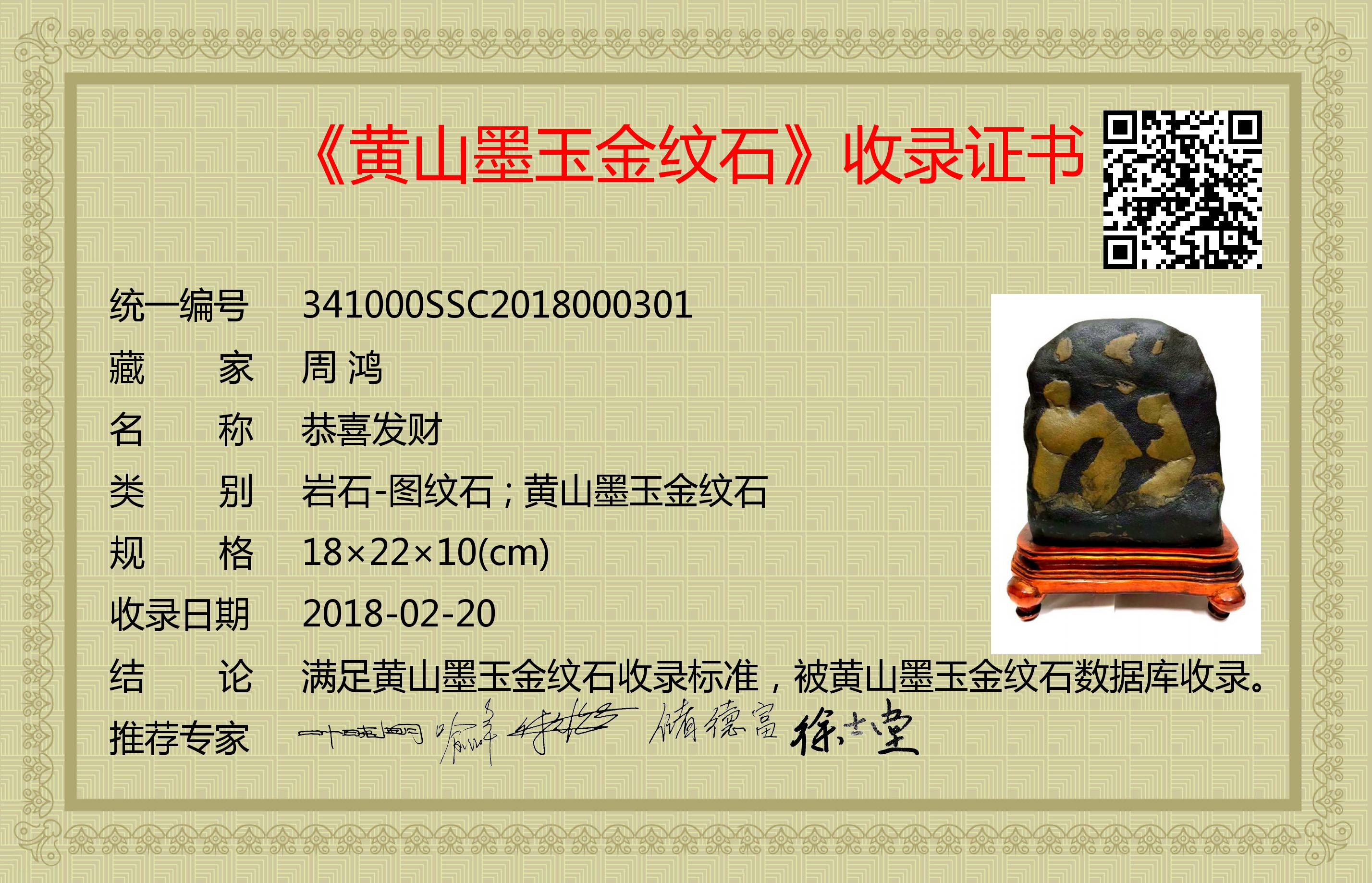 满足黄山墨玉金纹石收录标准,被黄山墨玉金纹石数据库收录。