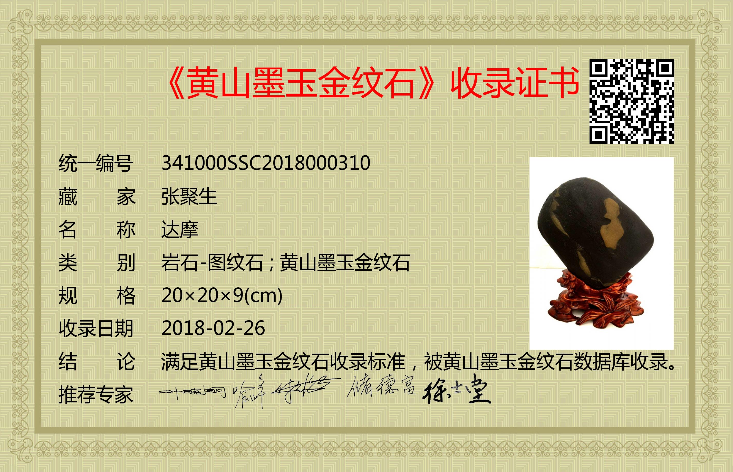 满足黄山墨玉金纹石收录标准,被黄山墨玉金纹石数据库收录。