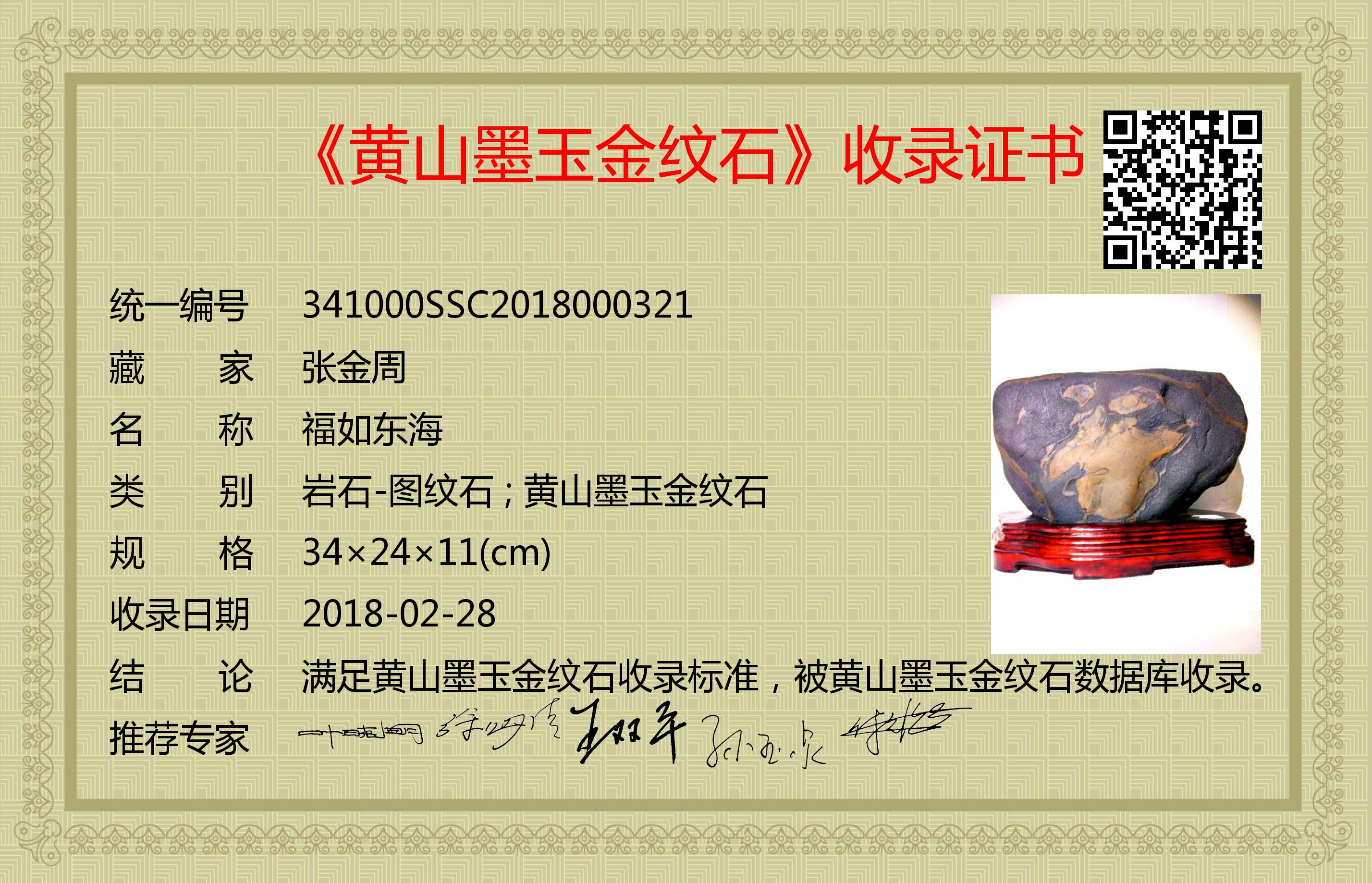 满足黄山墨玉金纹石收录标准,被黄山墨玉金纹石数据库收录。