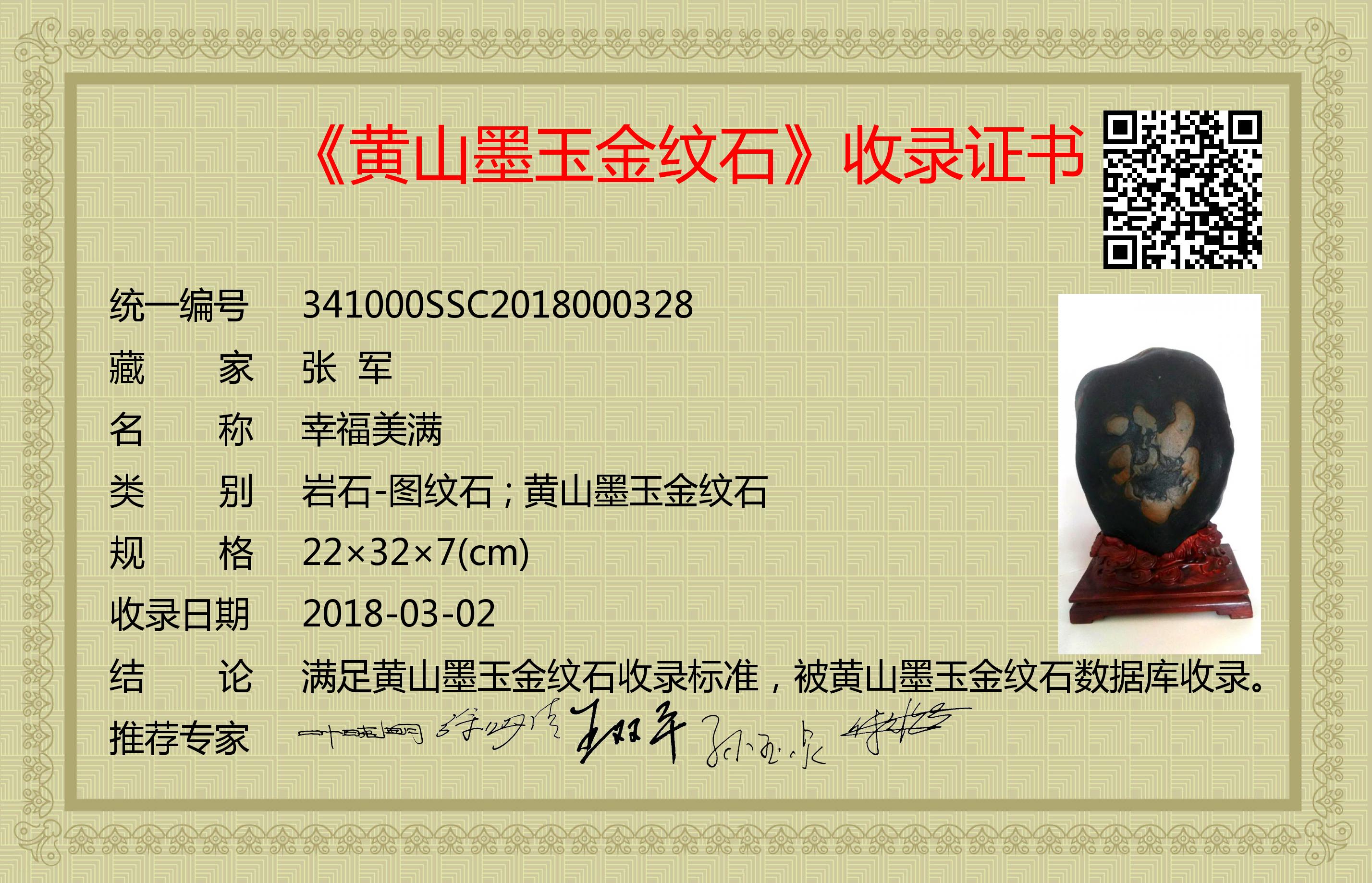 满足黄山墨玉金纹石收录标准,被黄山墨玉金纹石数据库收录。
