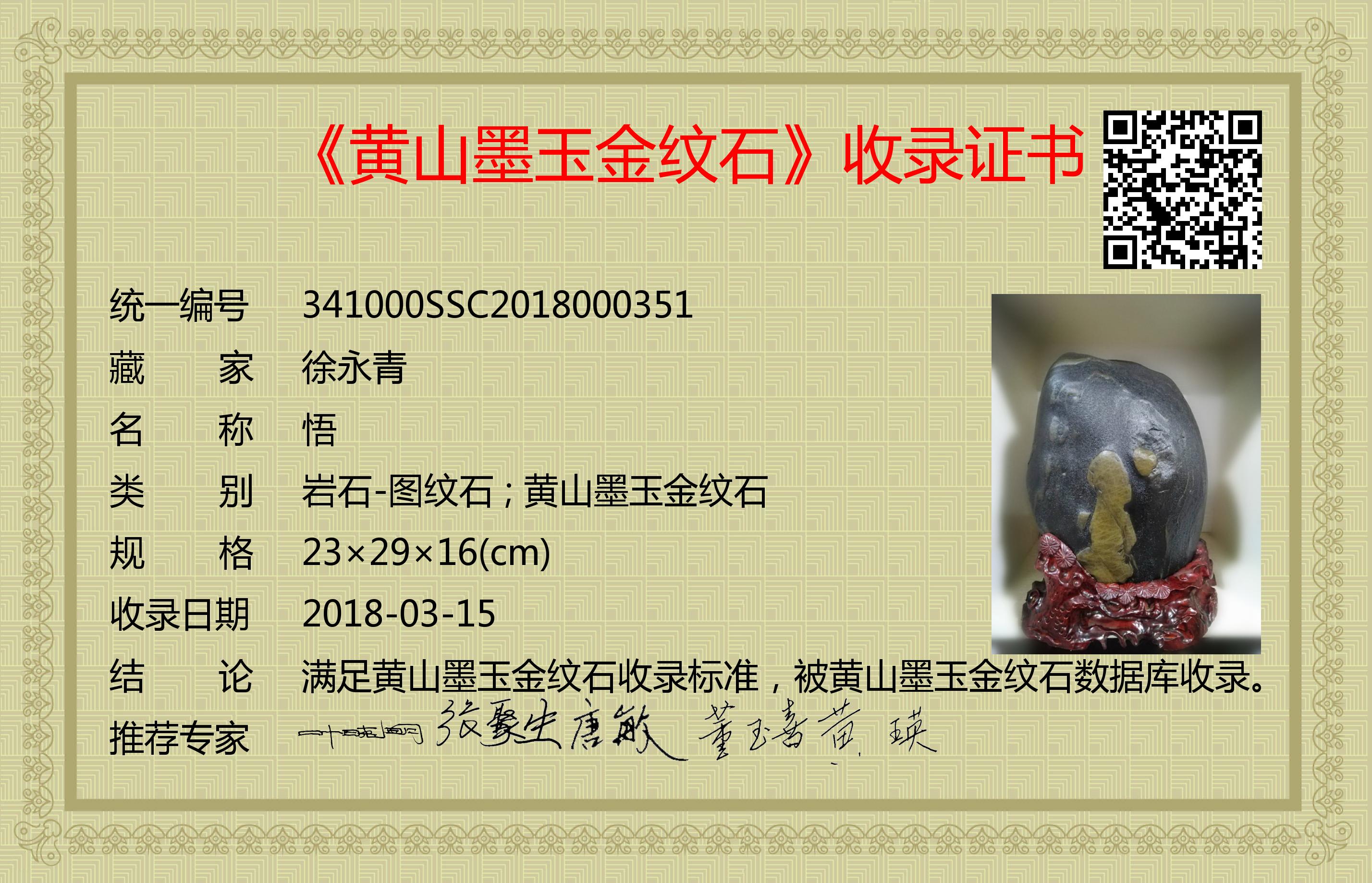 满足黄山墨玉金纹石收录标准,被黄山墨玉金纹石数据库收录。