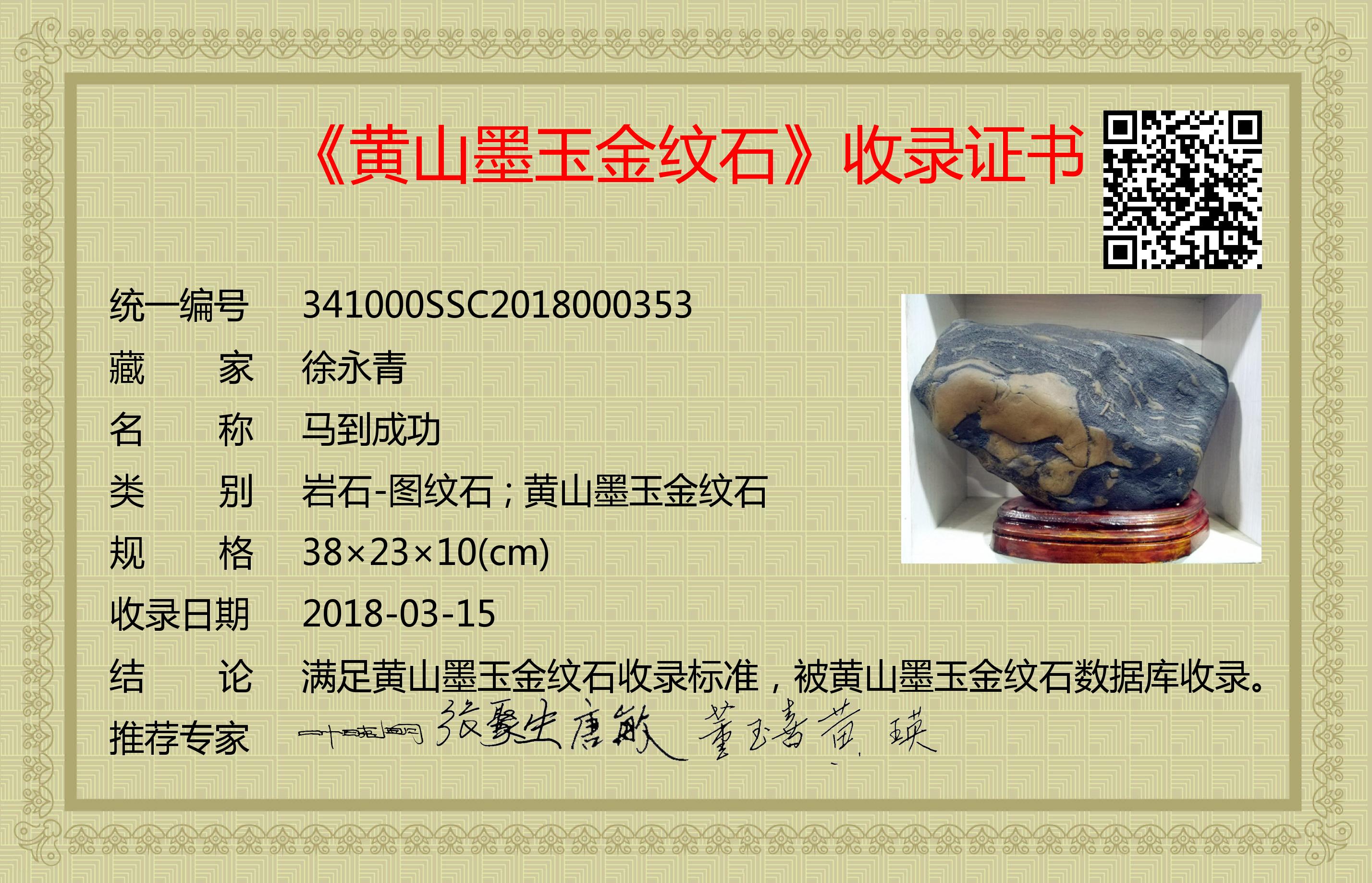 满足黄山墨玉金纹石收录标准,被黄山墨玉金纹石数据库收录。