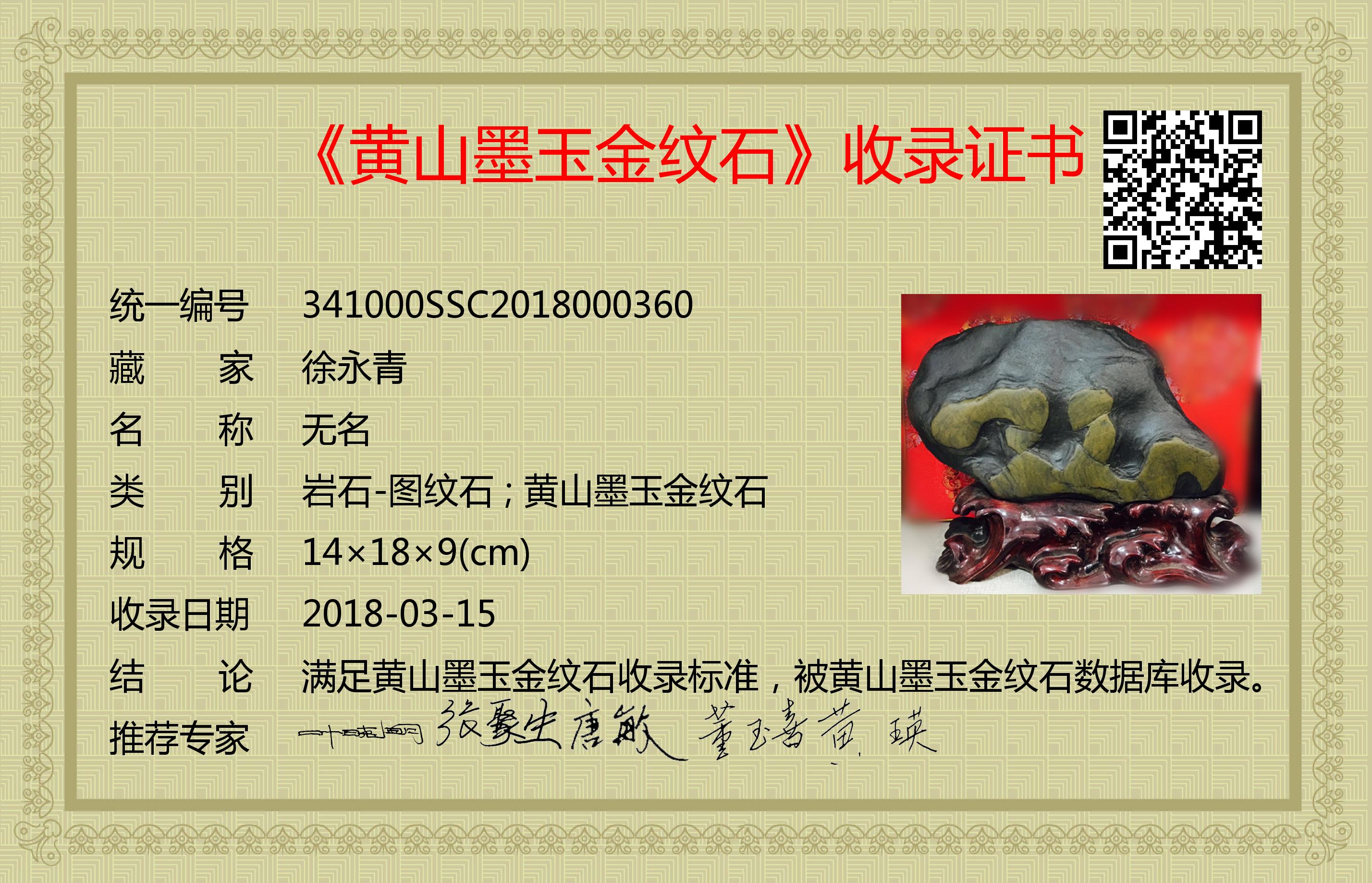 满足黄山墨玉金纹石收录标准,被黄山墨玉金纹石数据库收录。