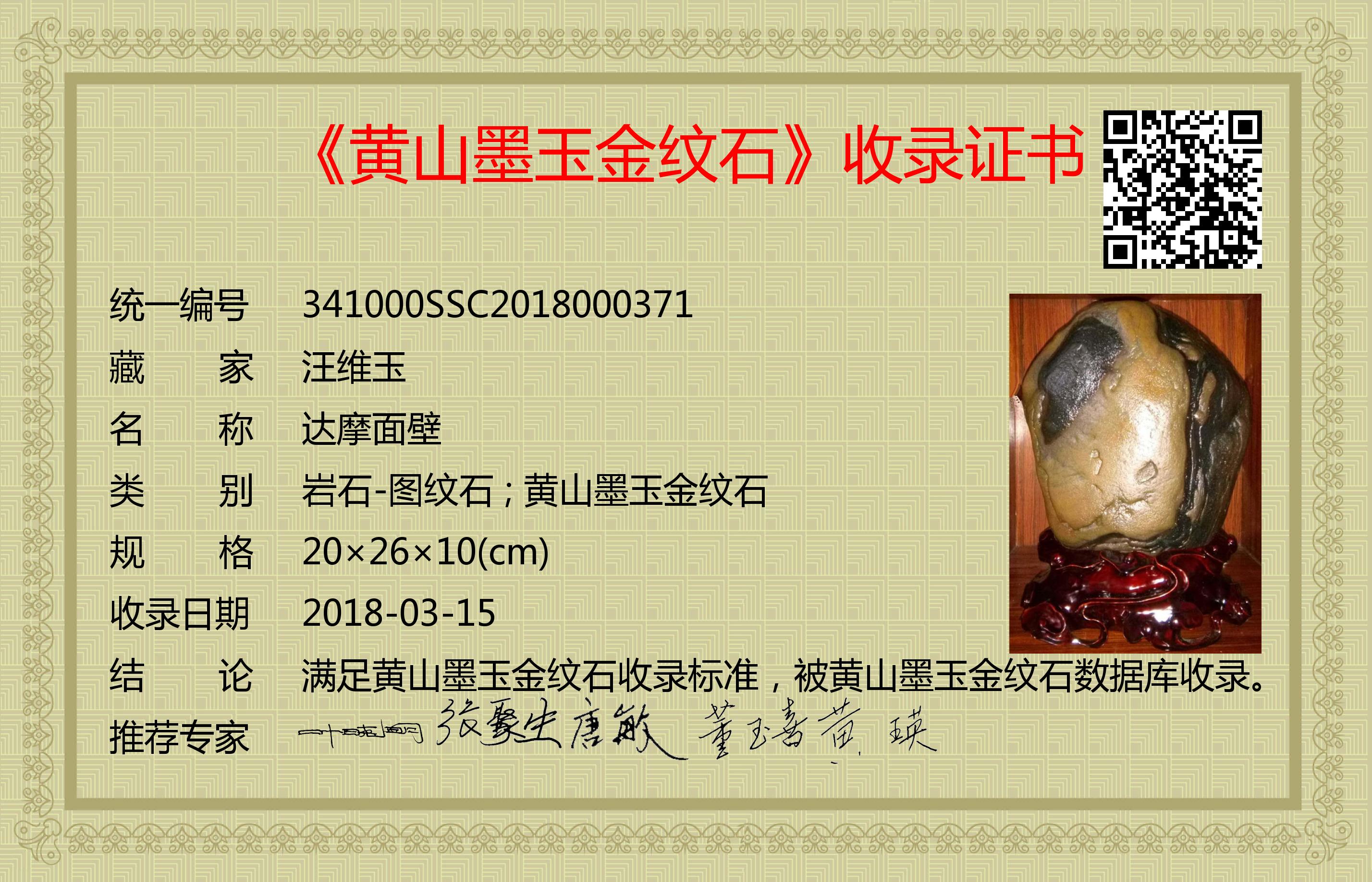 满足黄山墨玉金纹石收录标准,被黄山墨玉金纹石数据库收录。