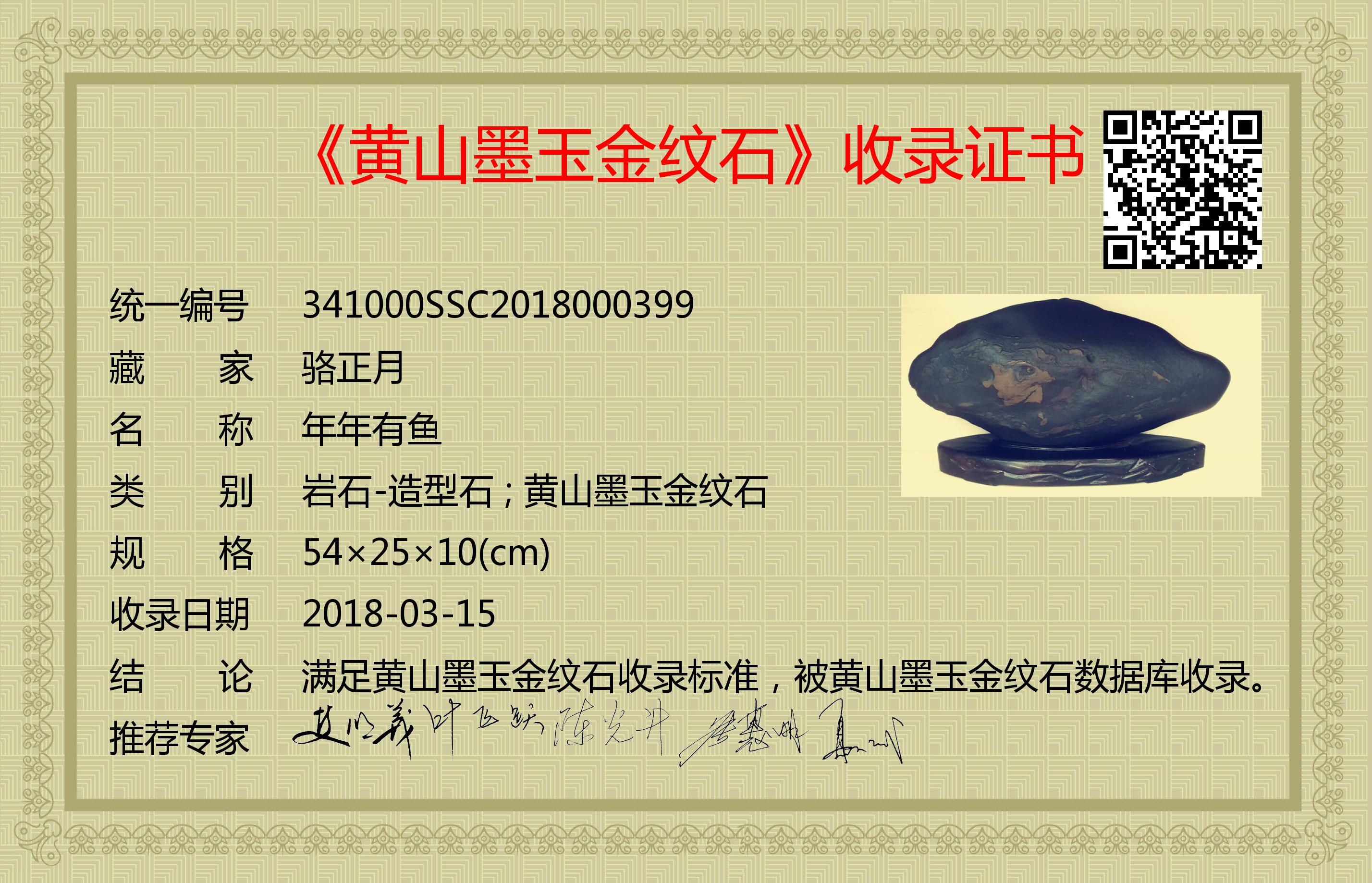 满足黄山墨玉金纹石收录标准,被黄山墨玉金纹石数据库收录。