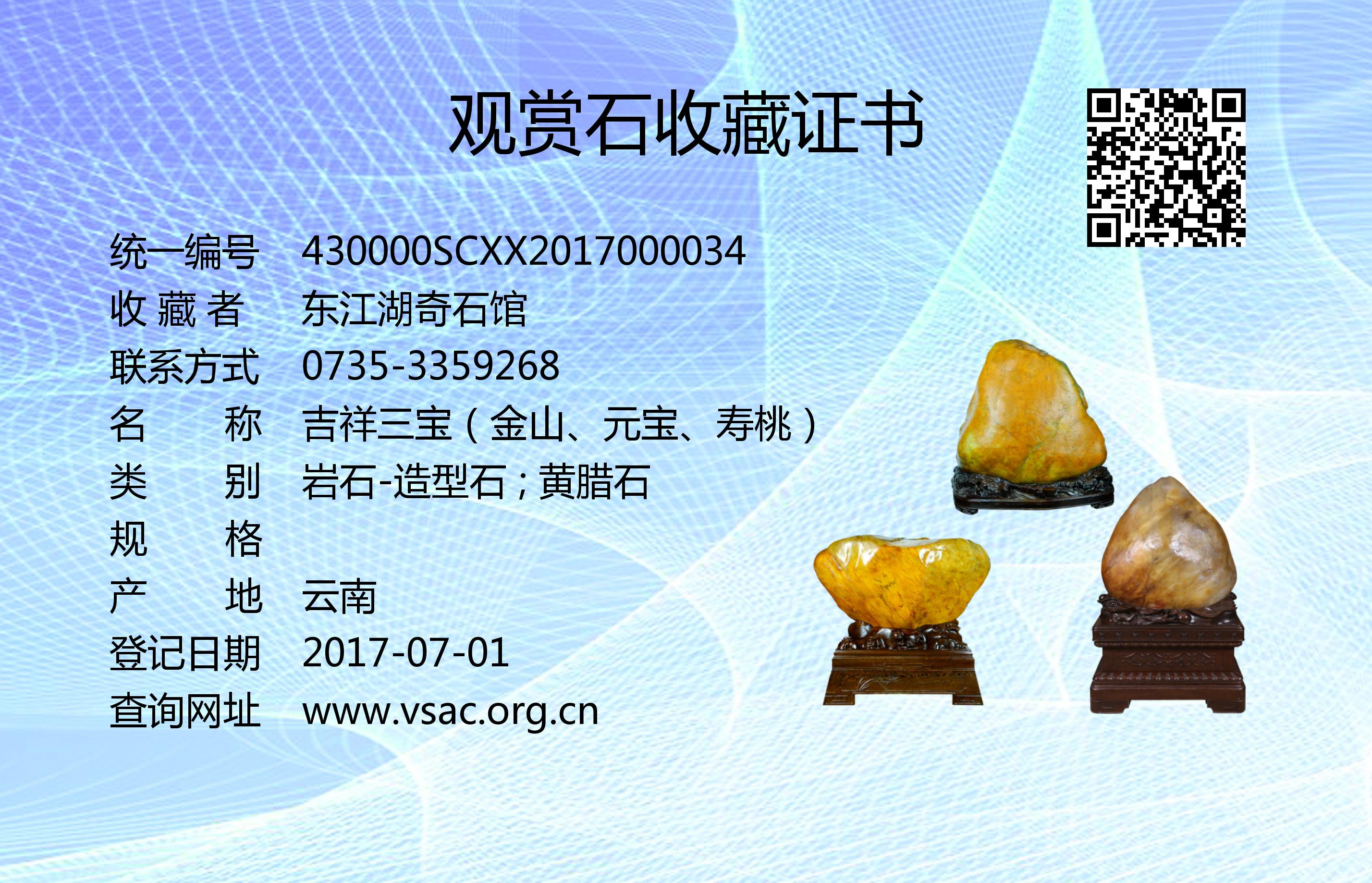 2017年4月8日,国石(北京)鉴定评估有限公司依据《观赏石鉴评》(GB/T31390-2015),鉴评结论为“一级”。