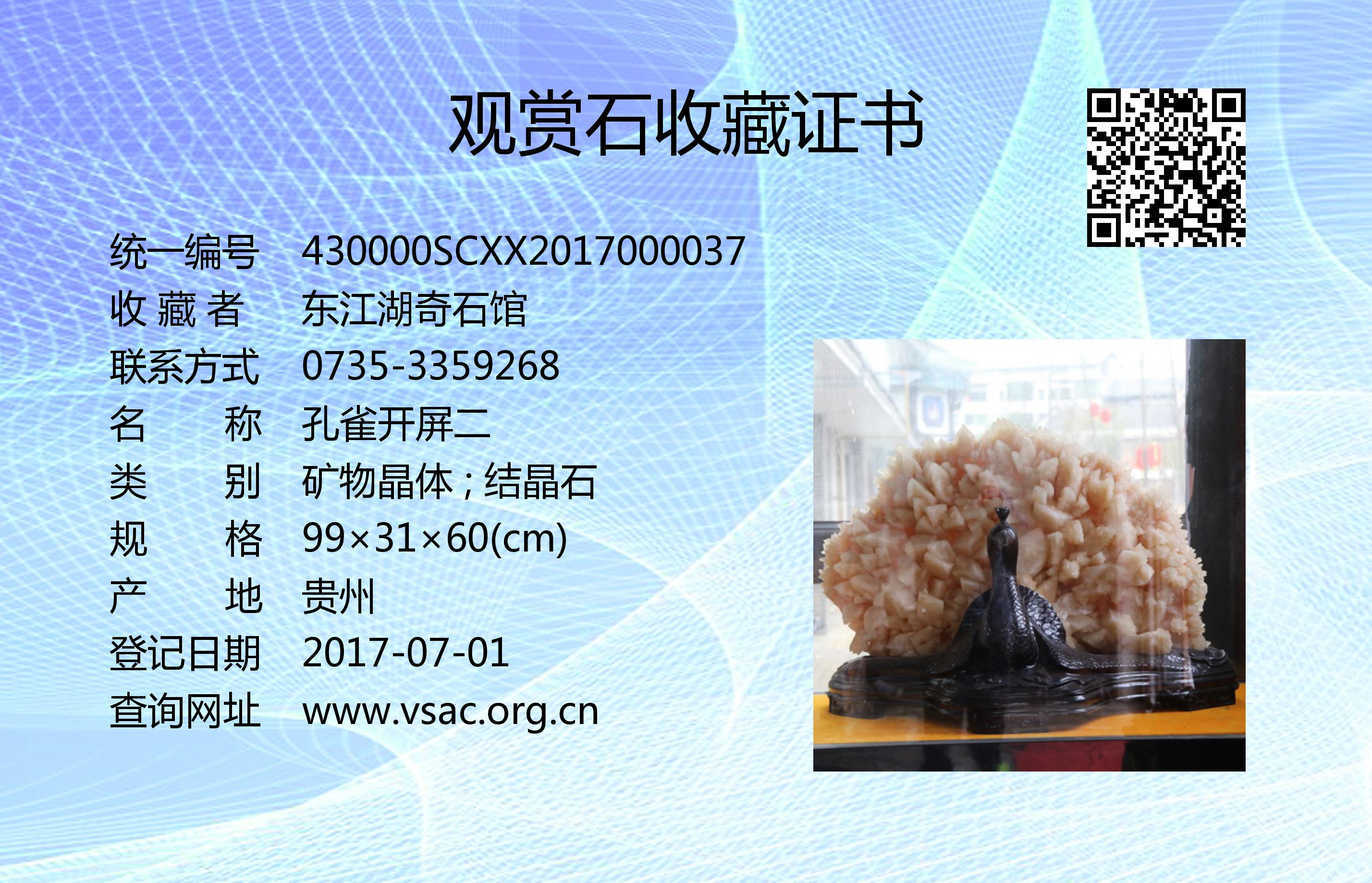 2017年4月8日,国石(北京)鉴定评估有限公司依据《观赏石鉴评》(GB/T31390-2015),鉴评结论为“一级”。