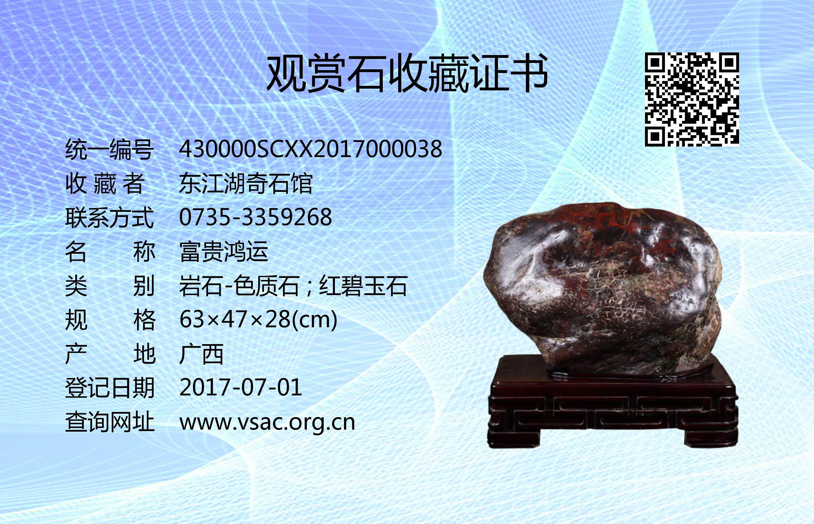 2017年4月8日,国石(北京)鉴定评估有限公司依据《观赏石鉴评》(GB/T31390-2015),鉴评结论为“二级”。