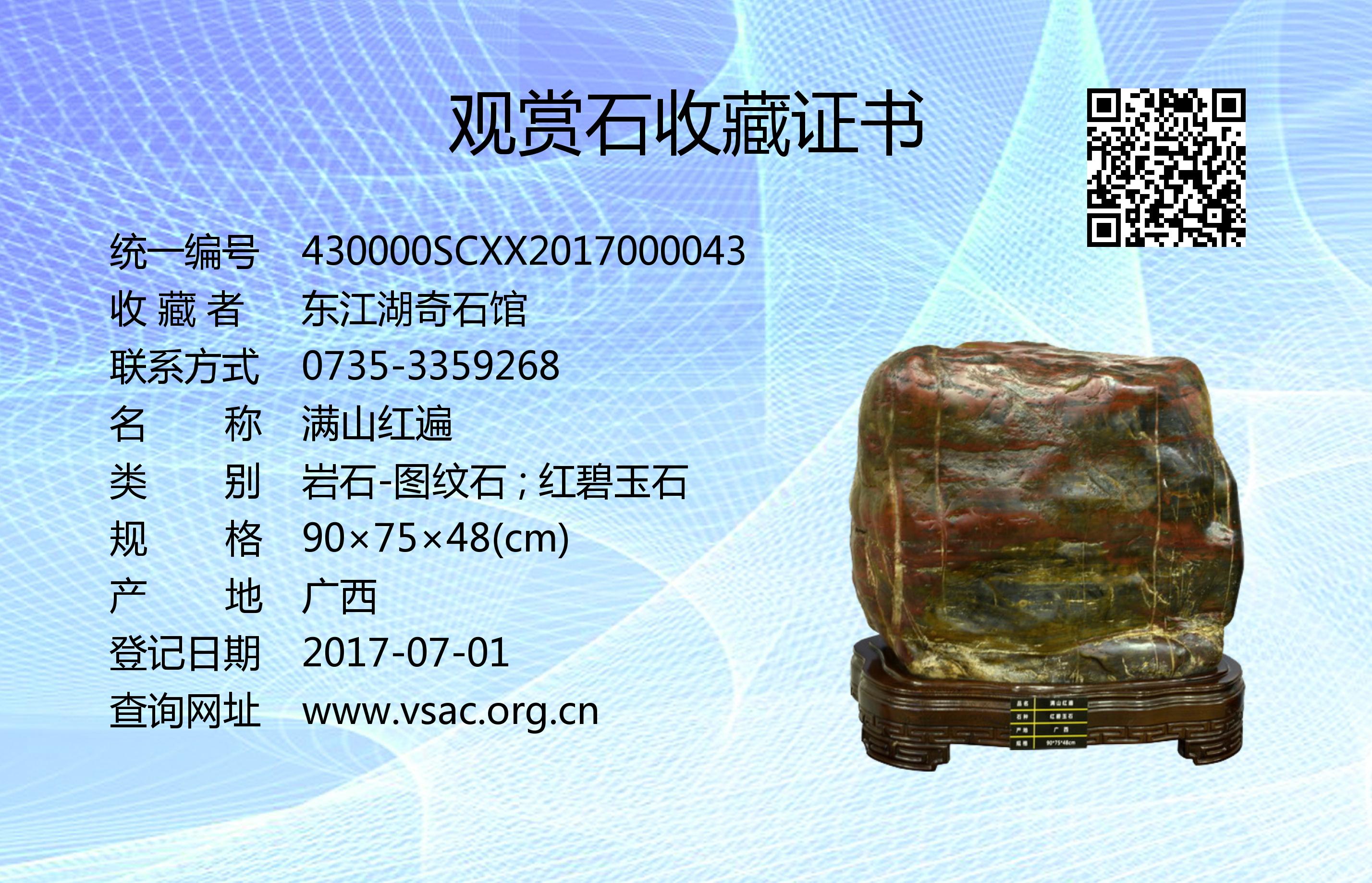 2017年4月8日,国石(北京)鉴定评估有限公司依据《观赏石鉴评》(GB/T31390-2015),鉴评结论为“二级”。