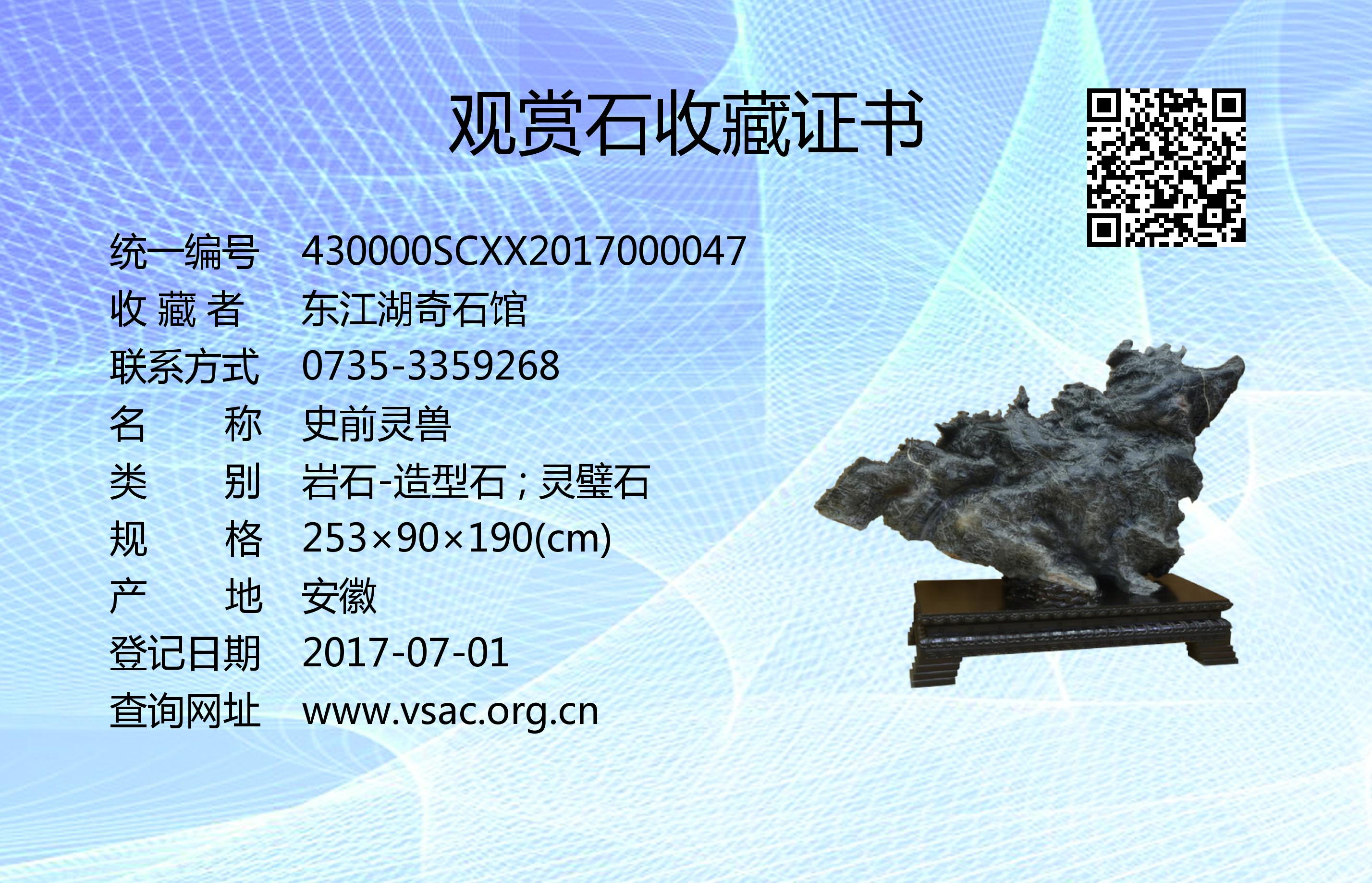 2017年4月8日,国石(北京)鉴定评估有限公司依据《观赏石鉴评》(GB/T31390-2015),鉴评结论为“二级”。