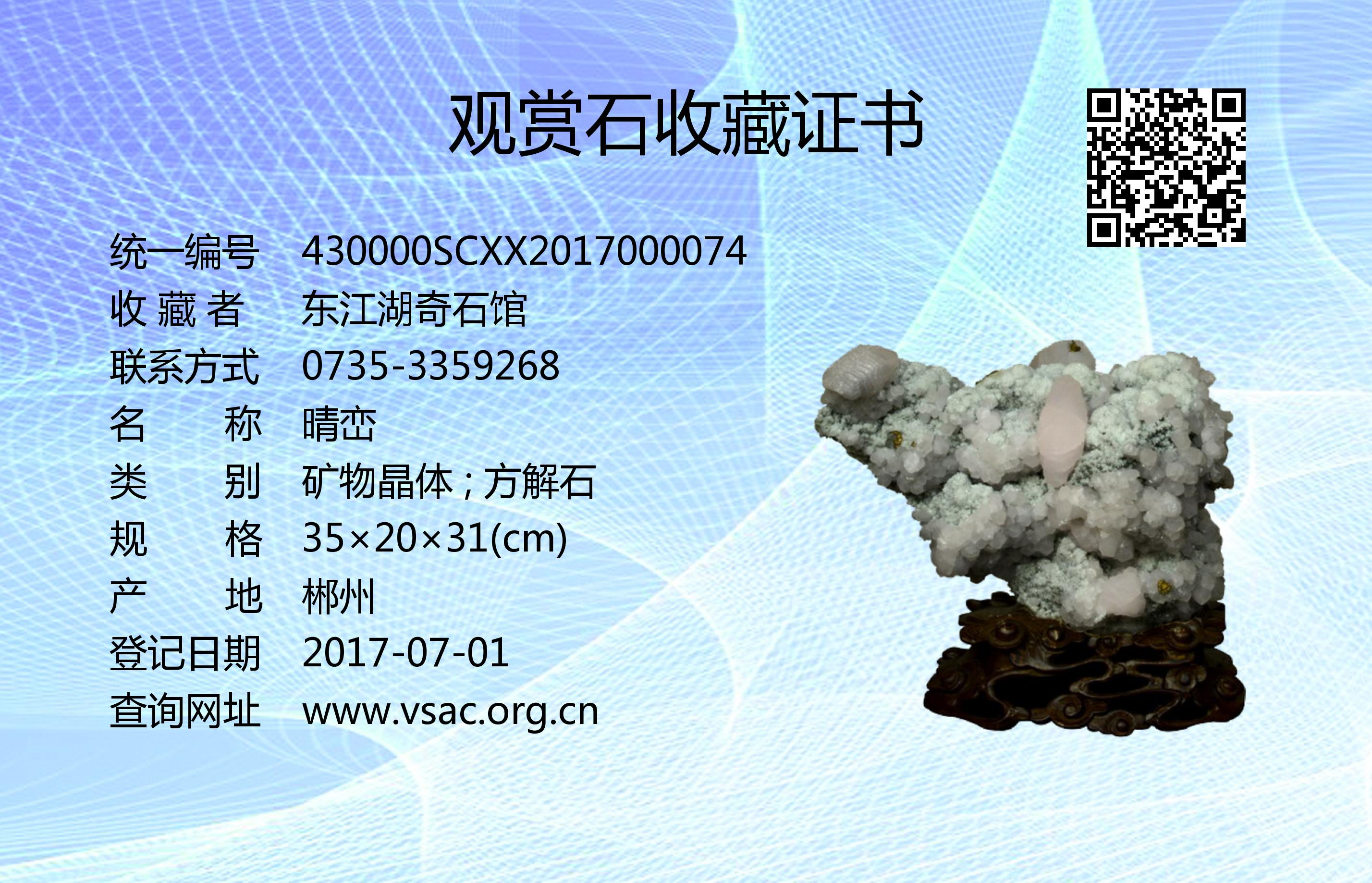 2017年4月8日,国石(北京)鉴定评估有限公司依据《观赏石鉴评》(GB/T31390-2015),鉴评结论为“二级”。