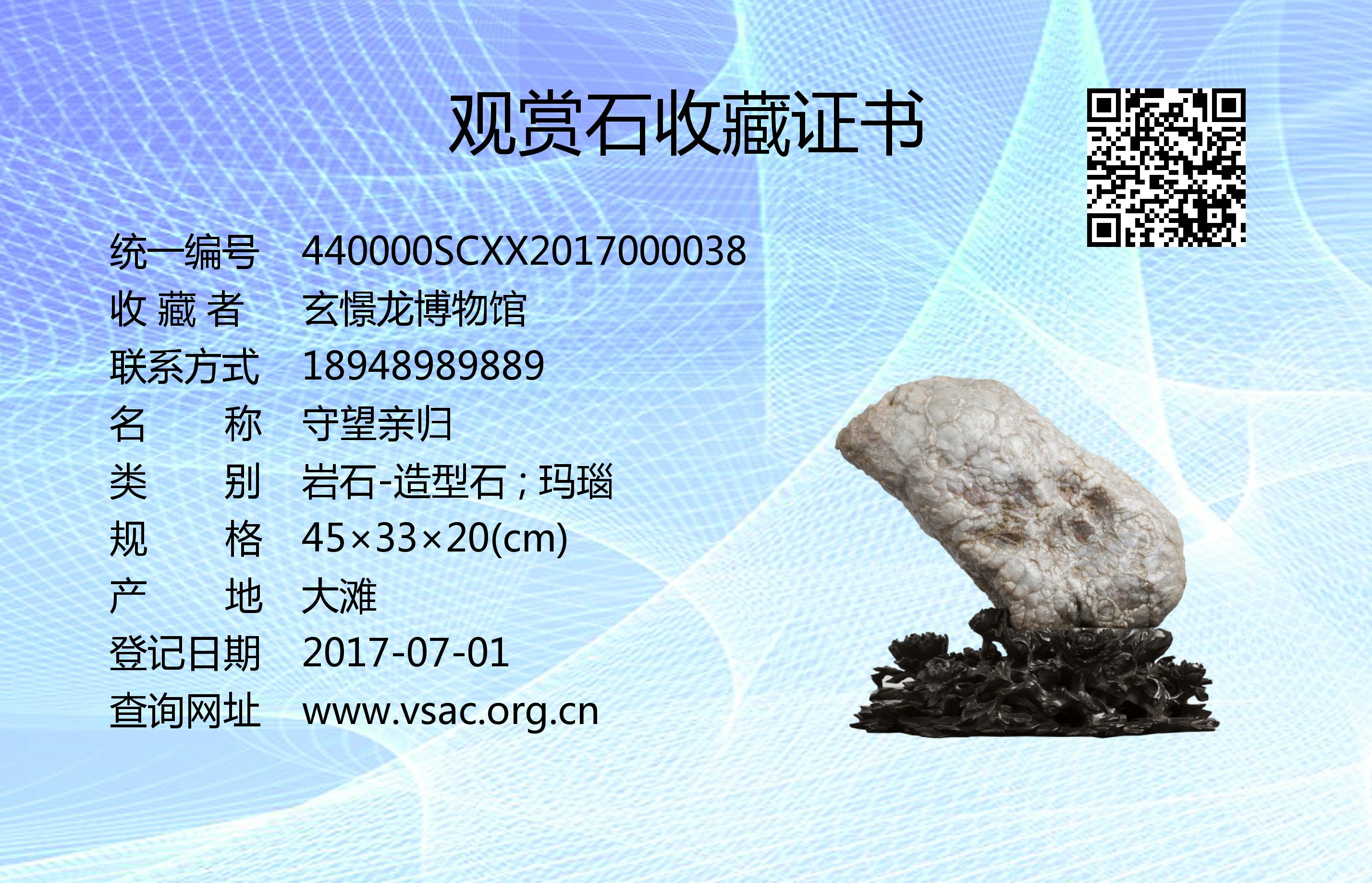 2016年8月8日,国石(北京)鉴定评估有限公司依据《观赏石鉴评》(GB/T31390-2015),鉴评结论为“二级”。