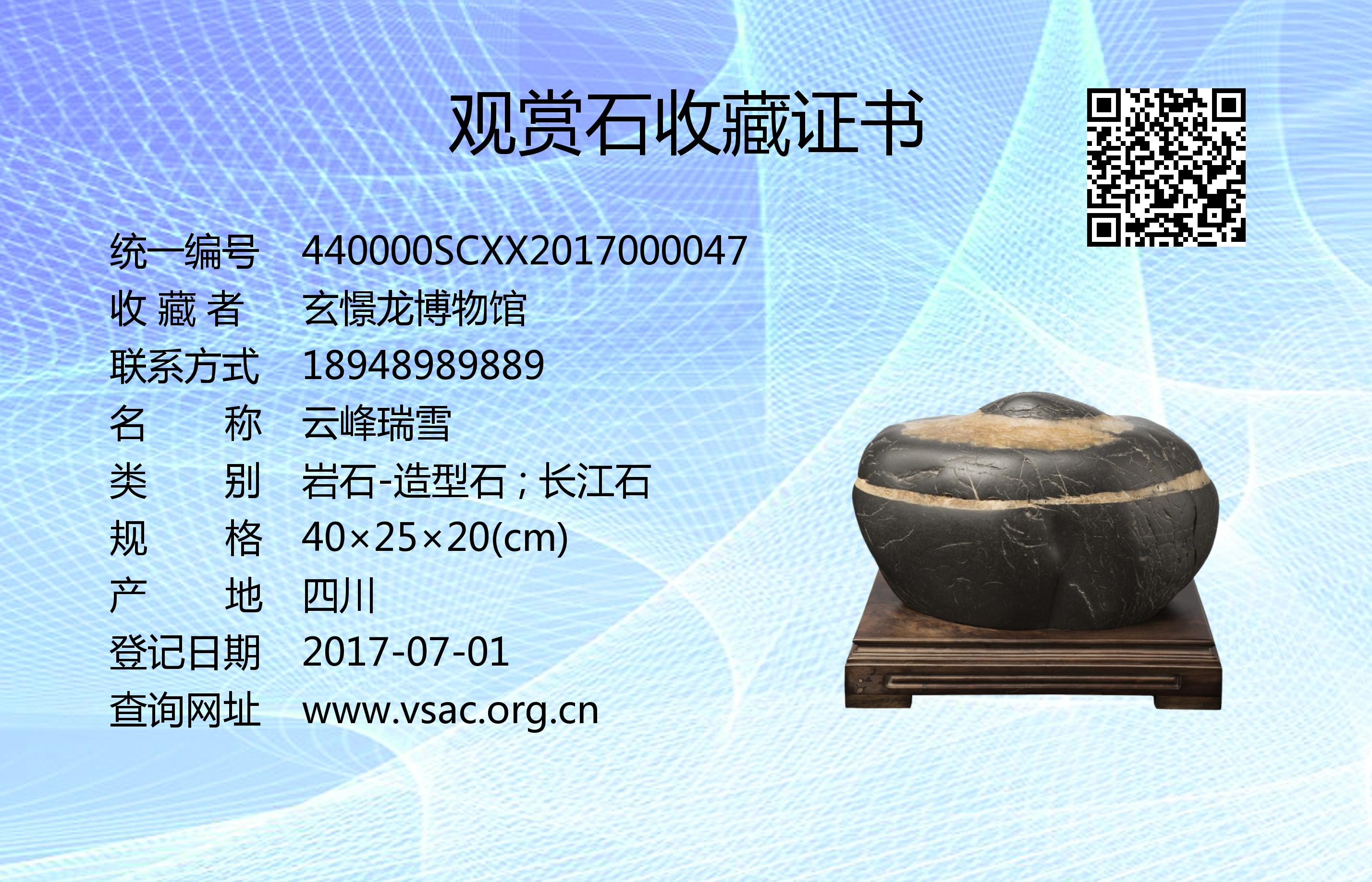 2016年8月8日,国石(北京)鉴定评估有限公司依据《观赏石鉴评》(GB/T31390-2015),鉴评结论为“一级”。