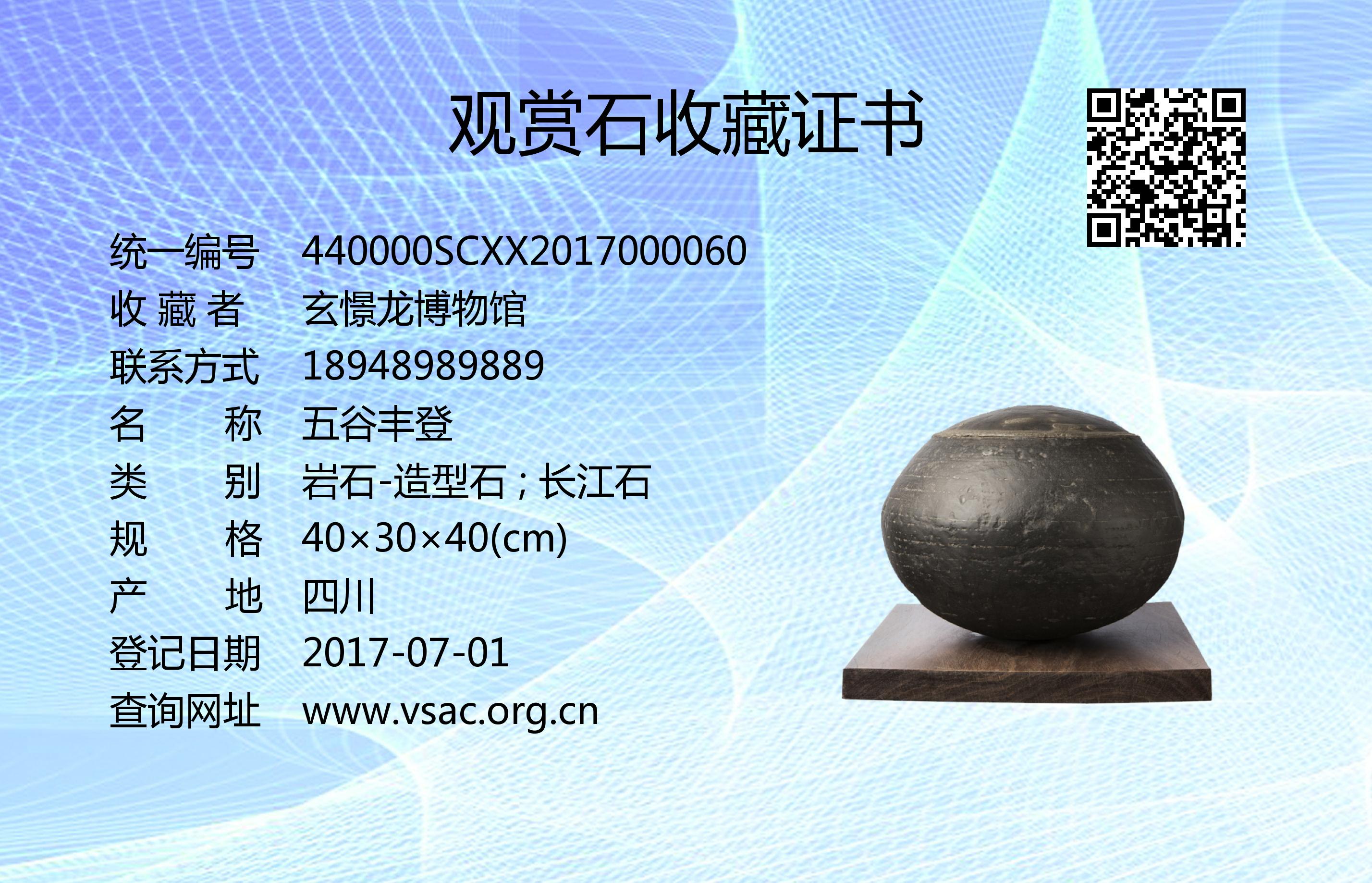 2016年8月8日,国石(北京)鉴定评估有限公司依据《观赏石鉴评》(GB/T31390-2015),鉴评结论为“一级”。