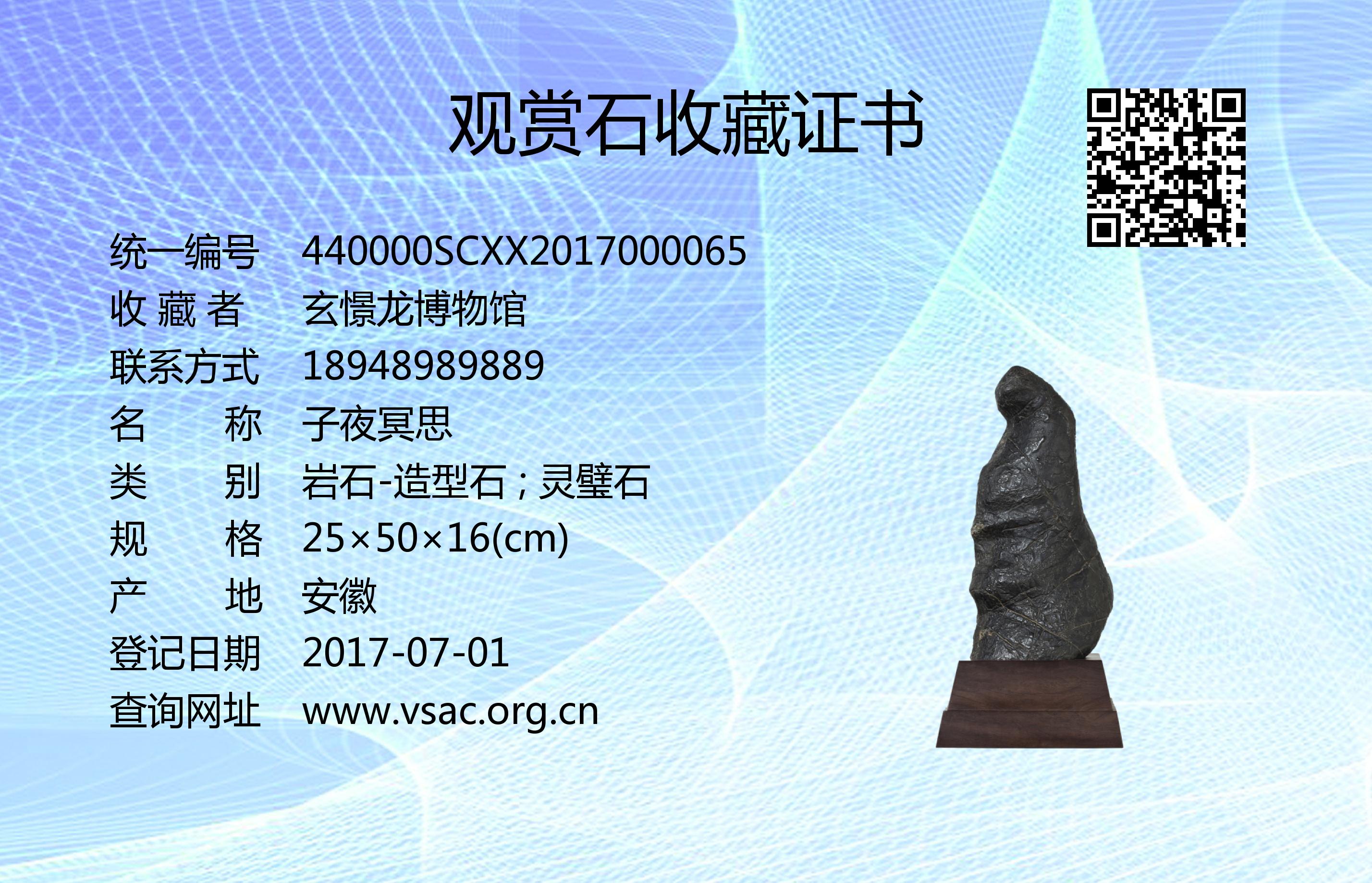 2016年8月8日,国石(北京)鉴定评估有限公司依据《观赏石鉴评》(GB/T31390-2015),鉴评结论为“二级”。