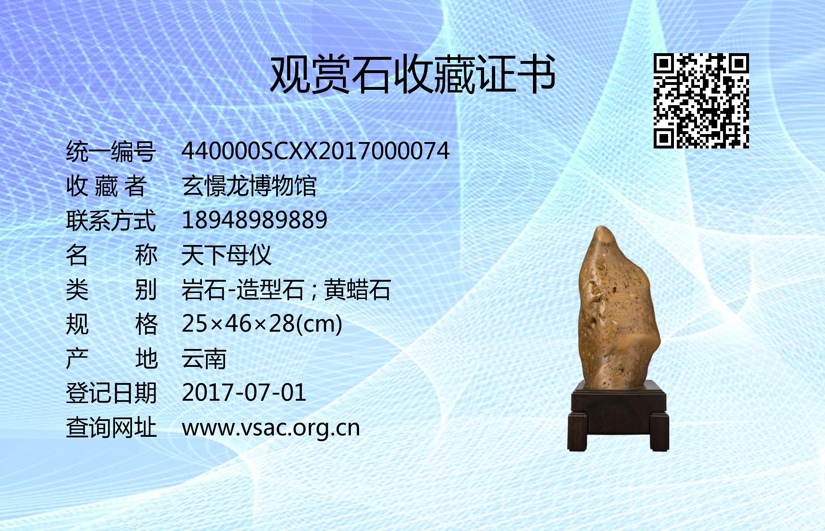 2016年8月8日,国石(北京)鉴定评估有限公司依据《观赏石鉴评》(GB/T31390-2015),鉴评结论为“二级”。