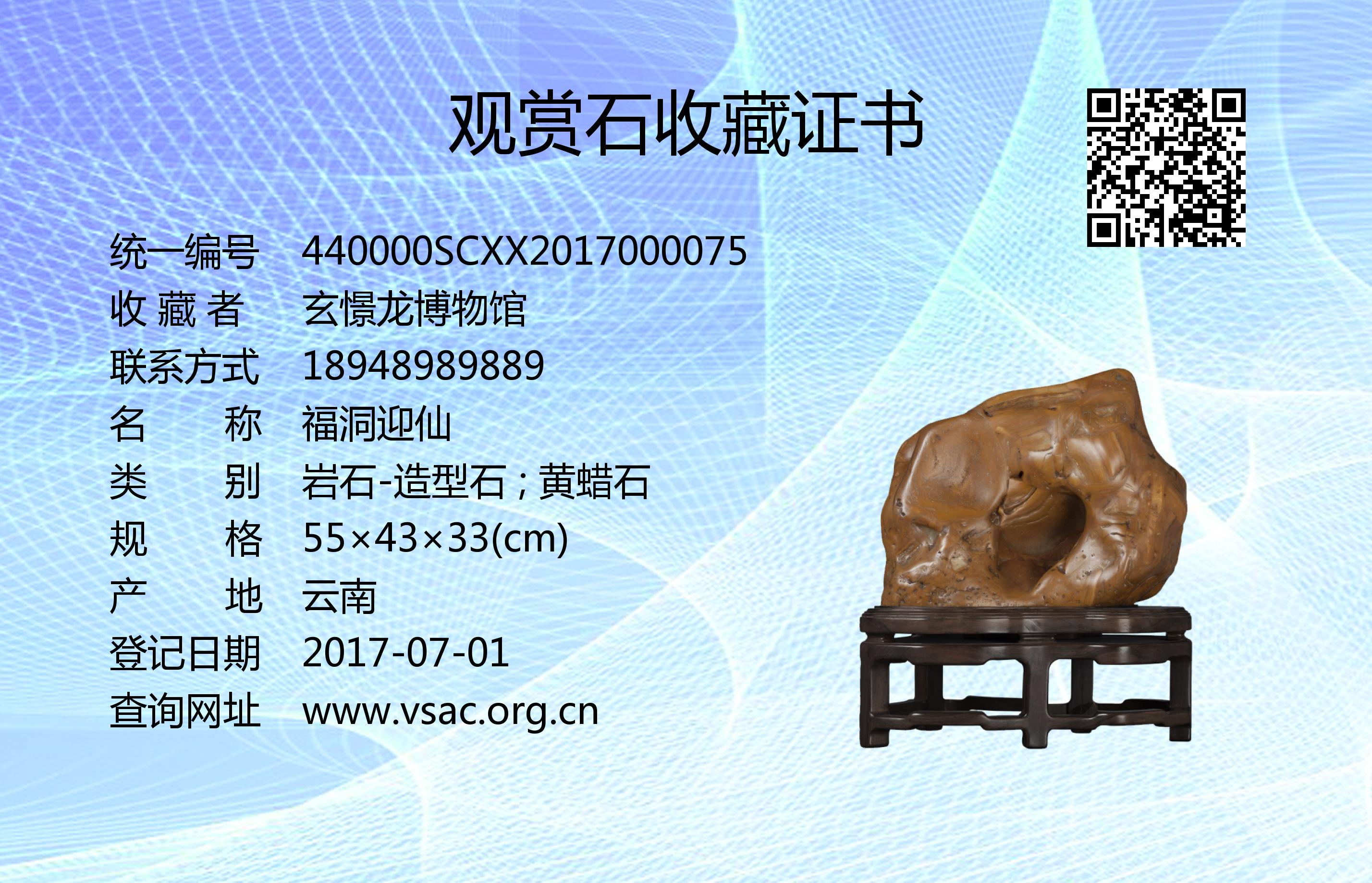 2016年8月8日,国石(北京)鉴定评估有限公司依据《观赏石鉴评》(GB/T31390-2015),鉴评结论为“一级”。