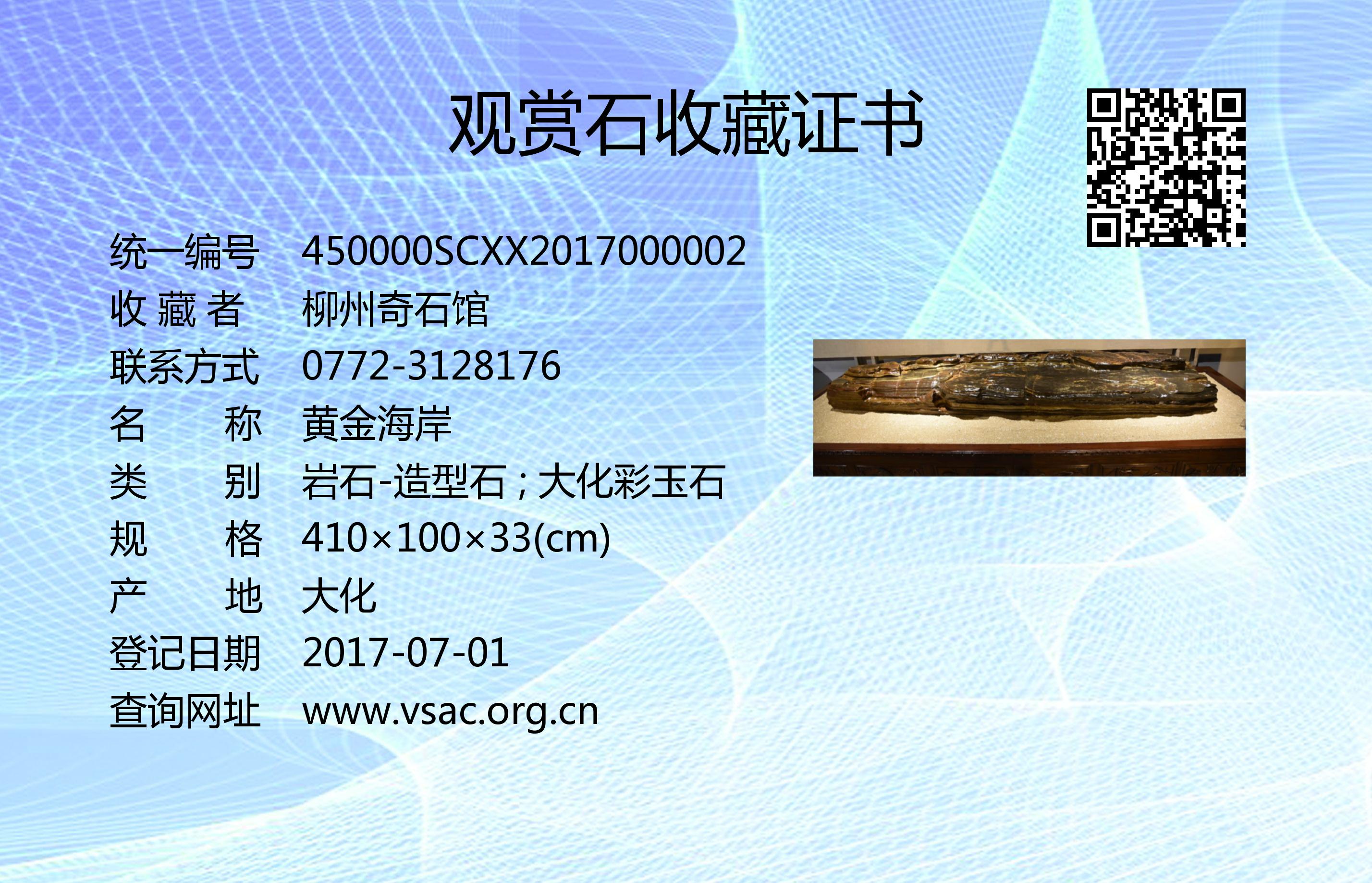 2016年11月30日,国石(北京)鉴定评估有限公司依据《观赏石鉴评》(GB/T31390-2015),鉴评结论为“特级”。