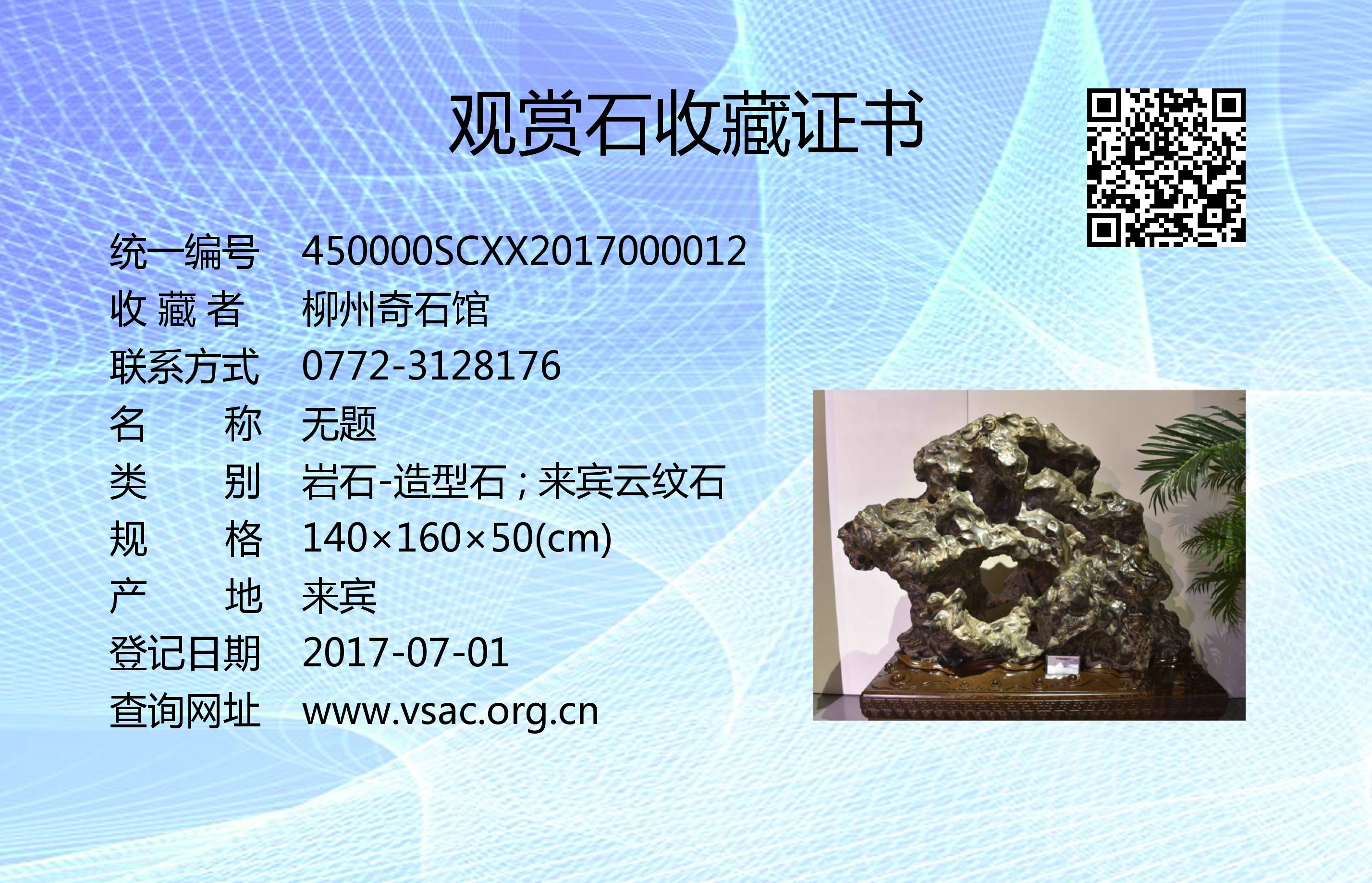 2016年11月30日,国石(北京)鉴定评估有限公司依据《观赏石鉴评》(GB/T31390-2015),鉴评结论为“特级”。