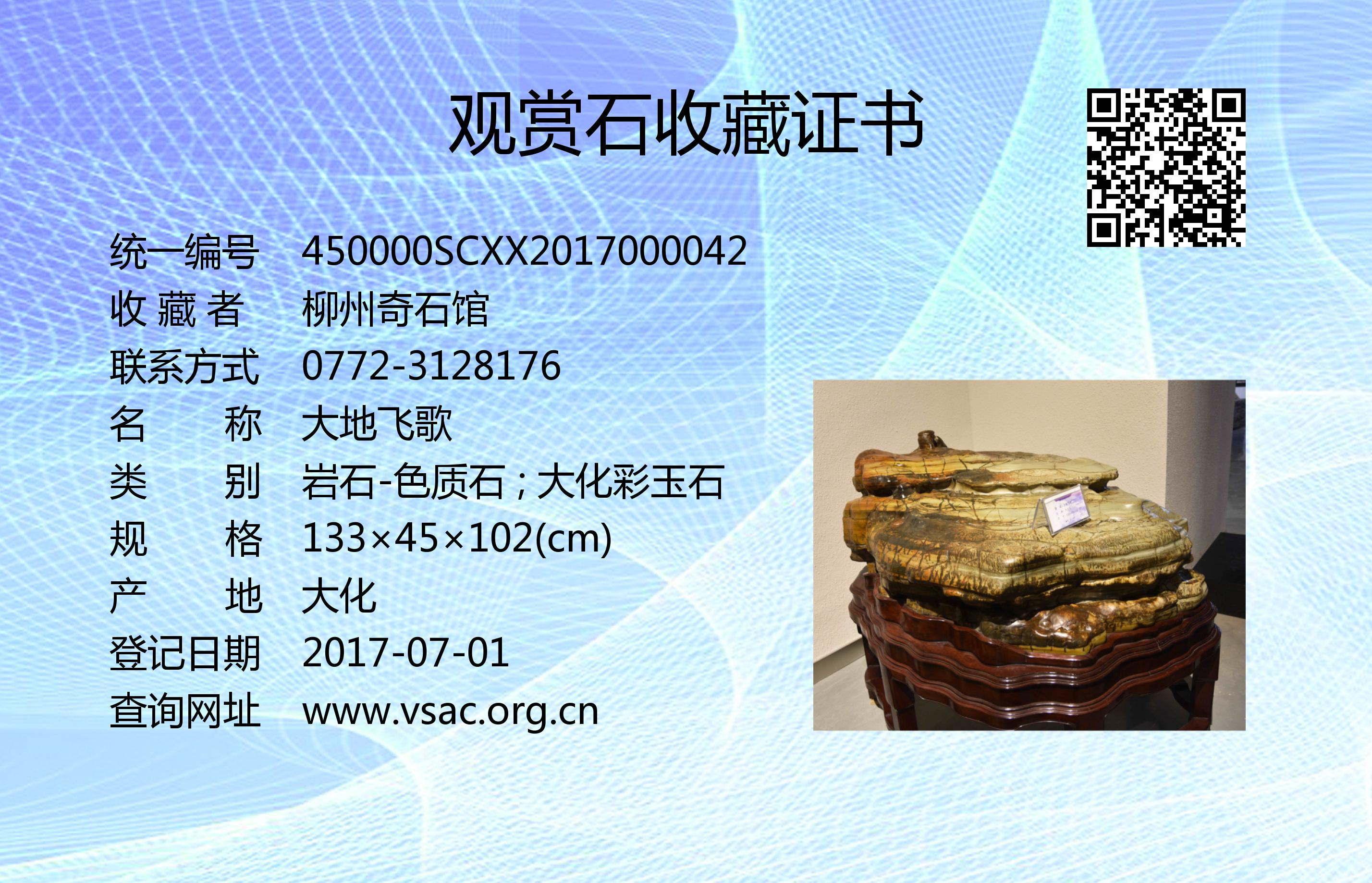 2016年11月30日,国石(北京)鉴定评估有限公司依据《观赏石鉴评》(GB/T31390-2015),鉴评结论为“特级”。