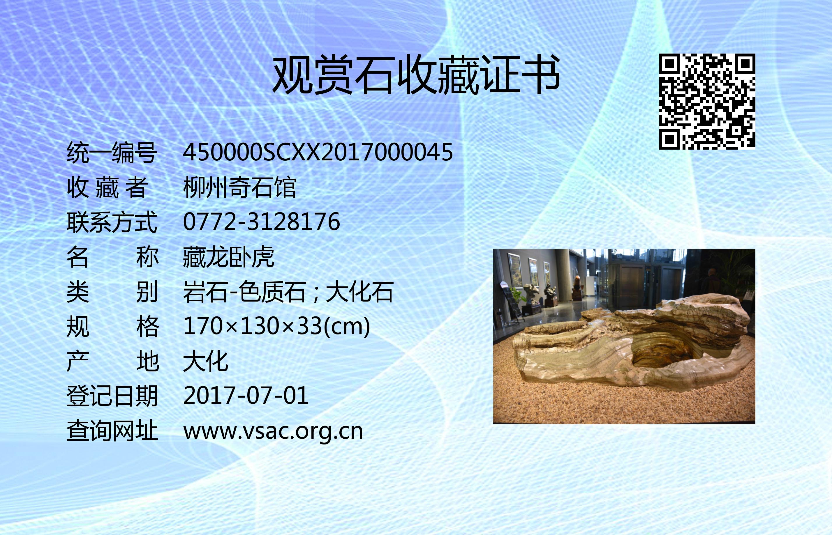 2016年11月30日,国石(北京)鉴定评估有限公司依据《观赏石鉴评》(GB/T31390-2015),鉴评结论为“特级”。