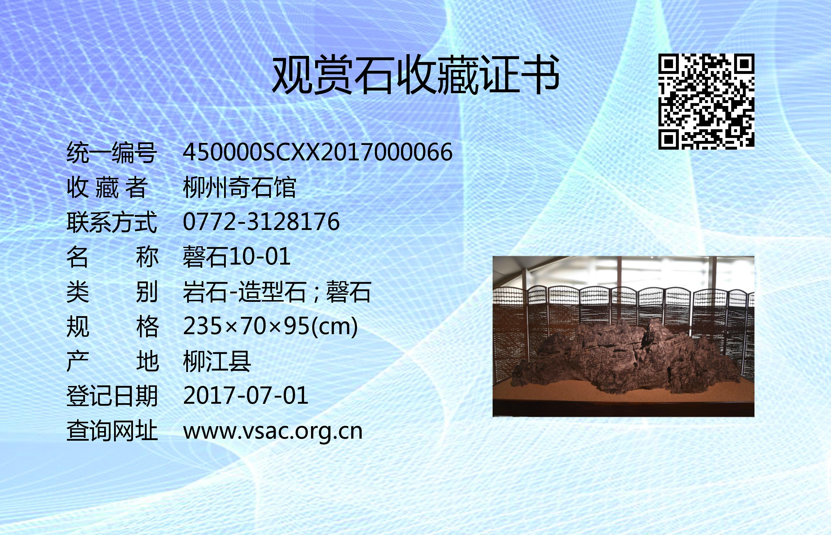 2016年11月30日,国石(北京)鉴定评估有限公司依据《观赏石鉴评》(GB/T31390-2015),鉴评结论为“一级”。