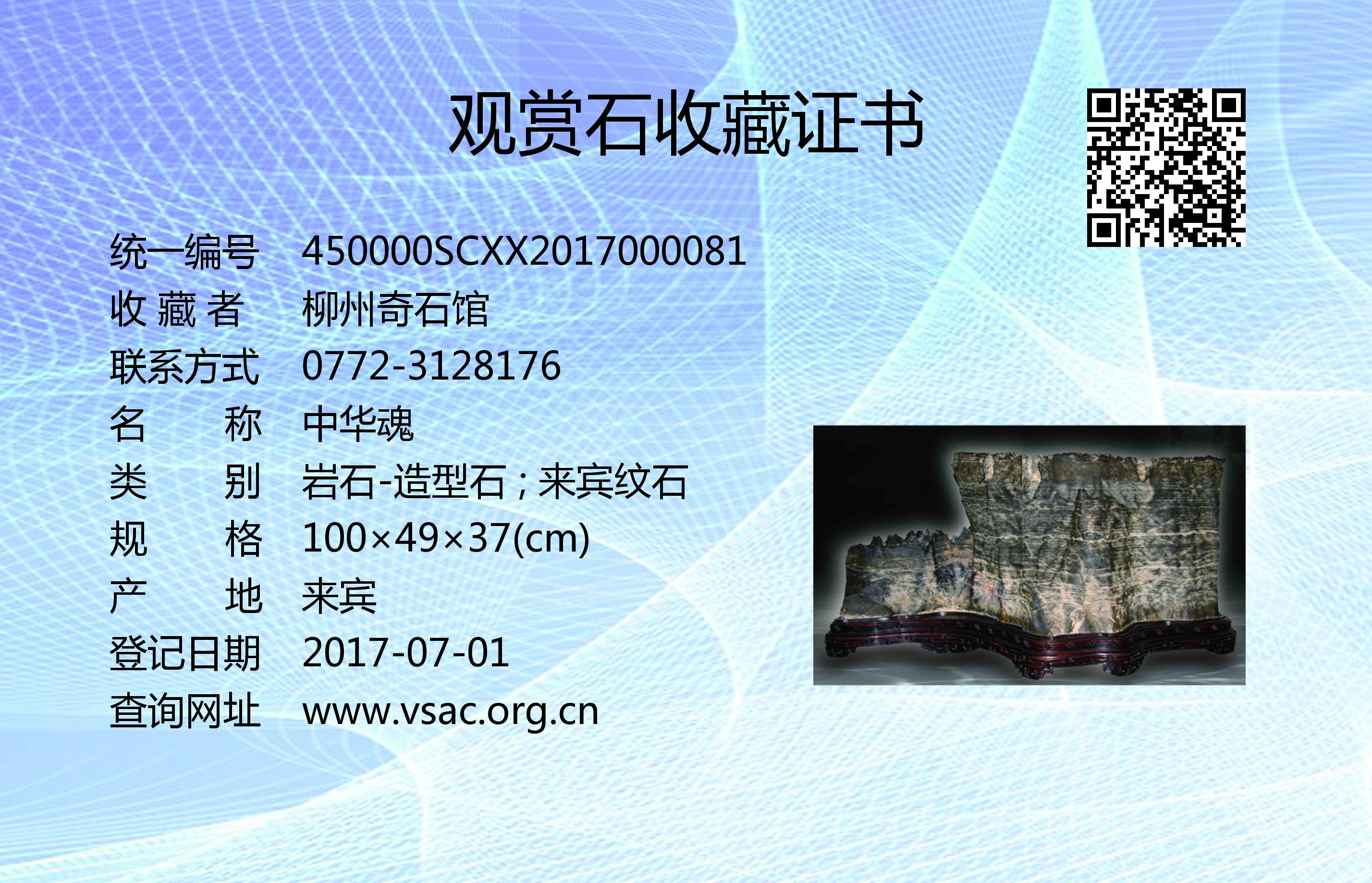 2016年11月30日,国石(北京)鉴定评估有限公司依据《观赏石鉴评》(GB/T31390-2015),鉴评结论为“特级”。