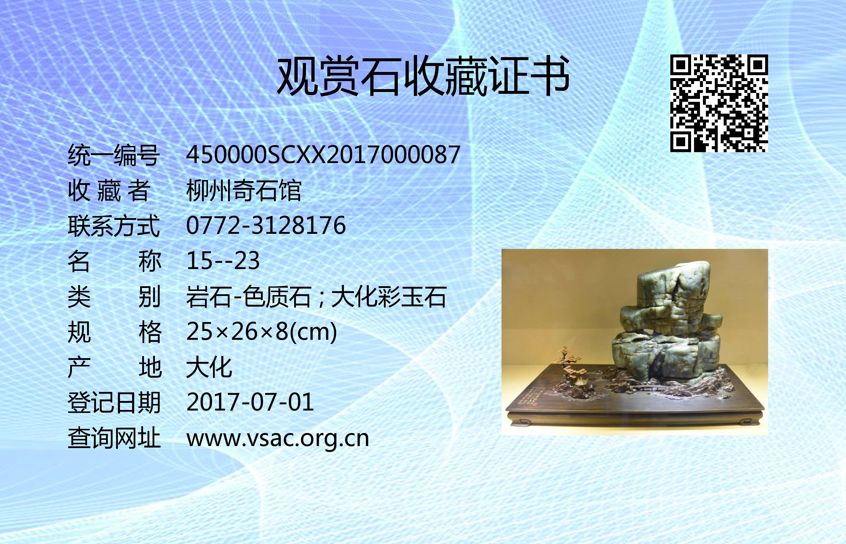 2016年11月30日,国石(北京)鉴定评估有限公司依据《观赏石鉴评》(GB/T31390-2015),鉴评结论为“特级”。