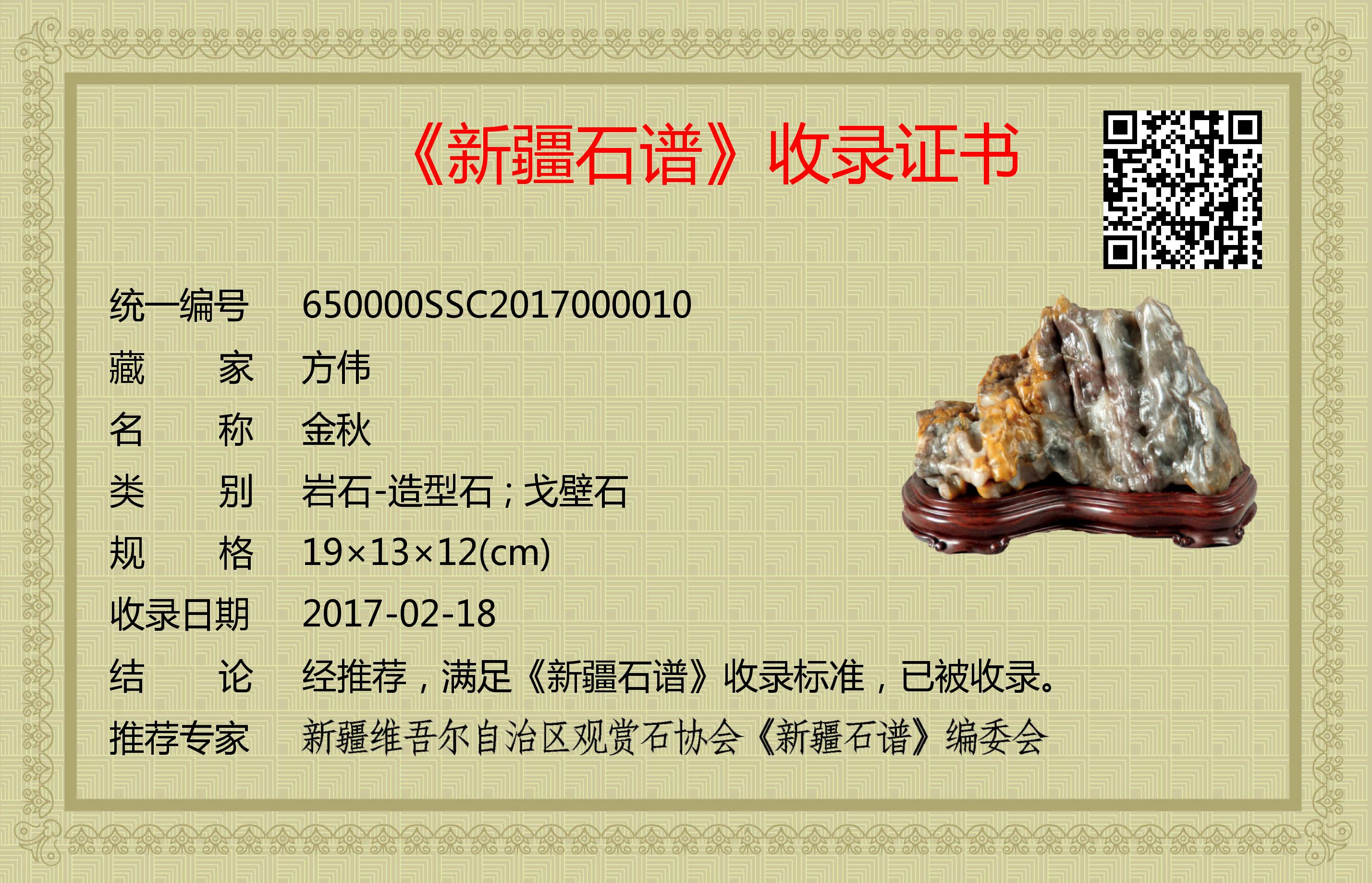 经推荐,满足《新疆石谱》收录标准,已被收录。