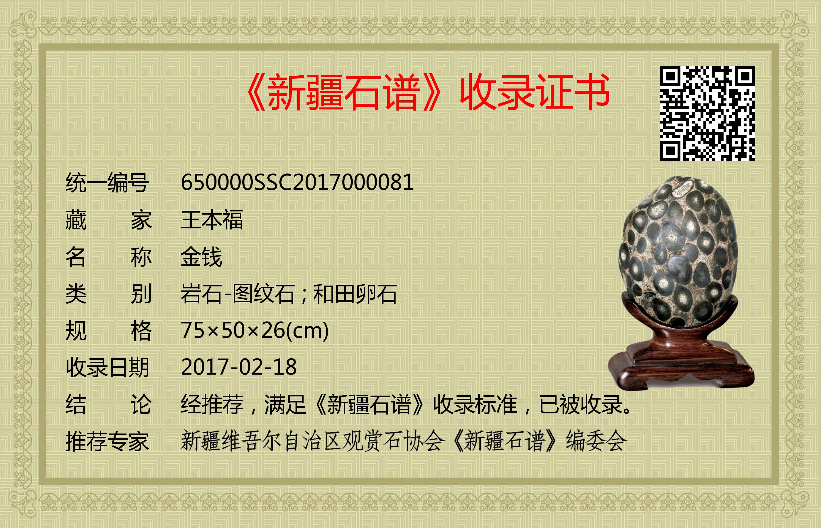 经推荐,满足《新疆石谱》收录标准,已被收录。