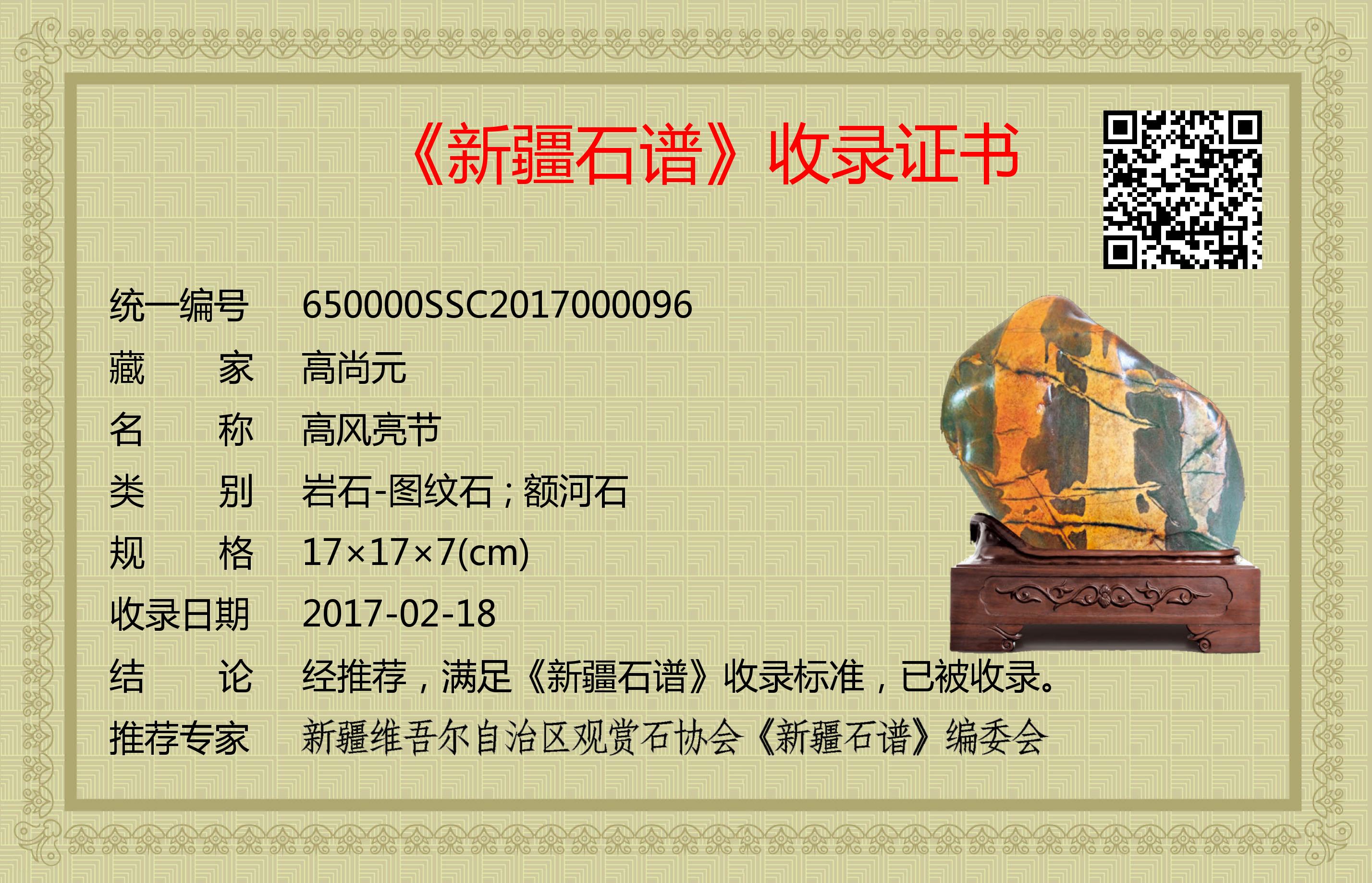 经推荐,满足《新疆石谱》收录标准,已被收录。