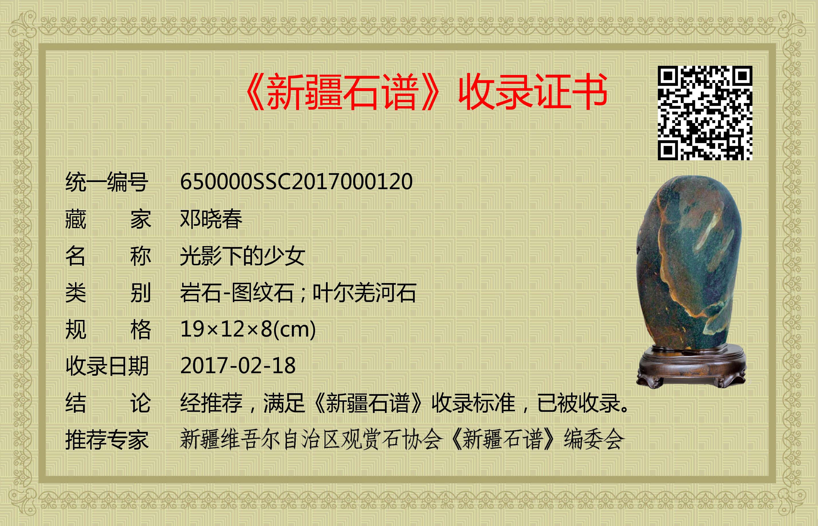 经推荐,满足《新疆石谱》收录标准,已被收录。